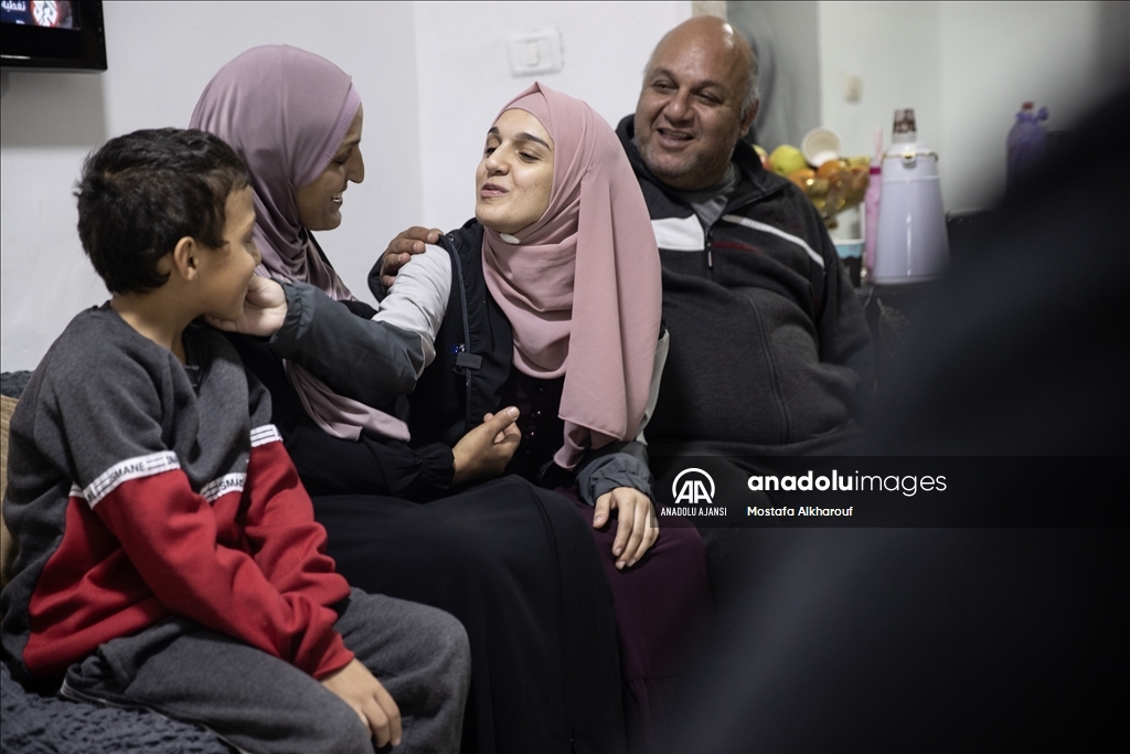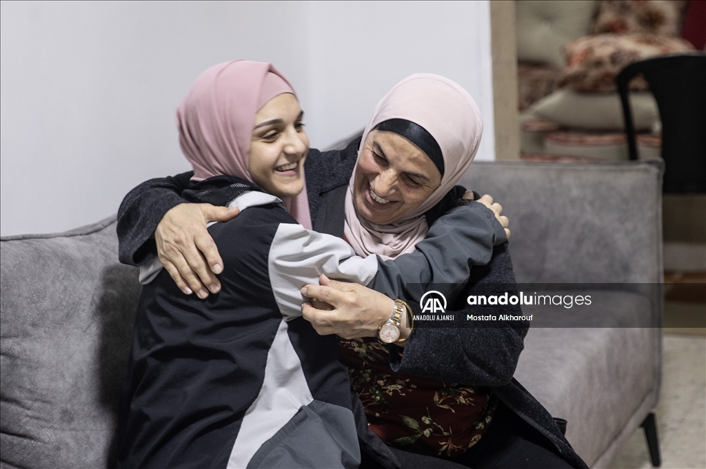 İsrail hapishanesinde 8 yıl tutuklu olan Filistinli Marah Bekir (solda), Hamas ile İsrail'in uzlaştığı "çatışmalara insani ara verilmesi mutabakatı" kapsamında serbest bırakıldı. Bekir, Kudüs'teki evinde ailesi tarafından karşılandı. ( Mostafa Alkharouf - Anadolu Ajansı )Mostafa Alkharouf