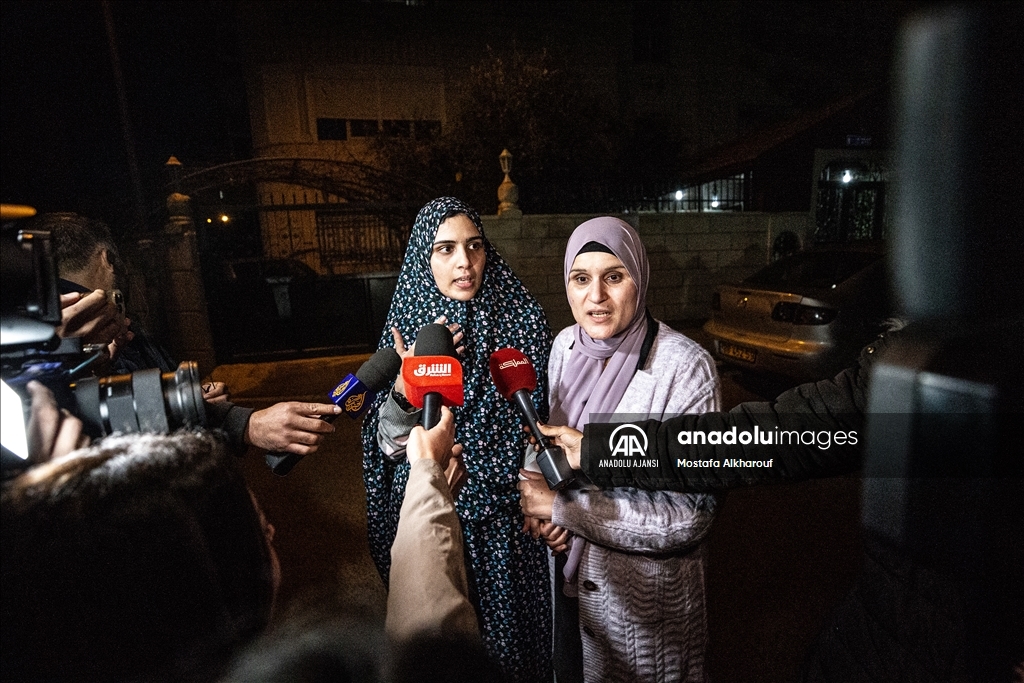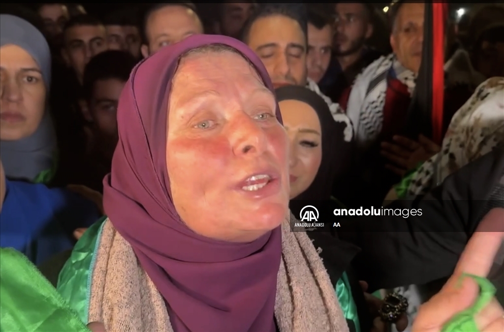 Filistin direniş hareketi Hamas'ın serbest bıraktığı 13 İsrailli esirin İsrail'e ulaşmasından kısa süre sonra işgal altındaki Batı Şeria'da bulunan İsrail’e bağlı Ofer Hapishanesi'nden 24'ü kadın 15'i 18 yaş altı çocuk olan 39 Filistinli esir serbest bırakıldı. İsrail esaretinden özgürlüğüne kavuşan Filistinli kadınlardan Hanan Bergusi (59), burada AA muhabirinin de aralarında bulunduğu basın mensuplarına açıklamalarda bulundu. ( AA - Anadolu Ajansı )AA