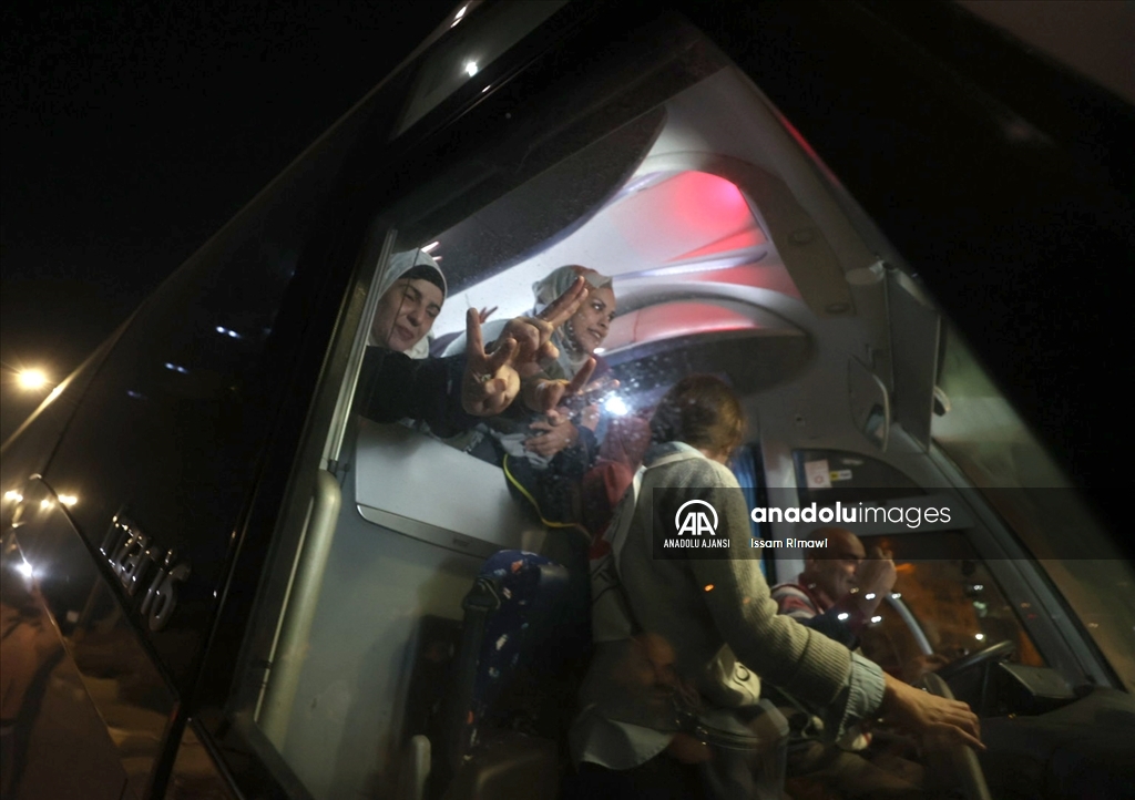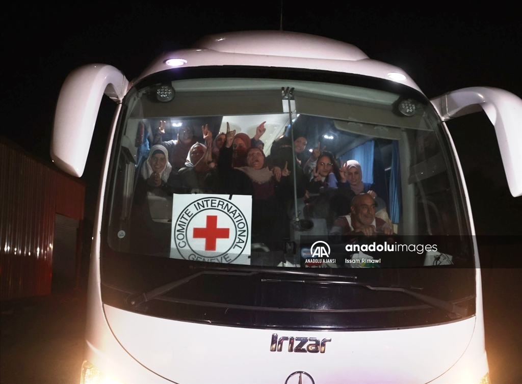 İsrail ile Hamas arasında yapılan esir takası mutabakatı kapsamında İsrail hapishanelerindeki 24'ü kadın 15'i de 18 yaş altı çocuk olan 39 Filistinli esir serbest bırakıldı. Serbest bırakılan Filistinliler, Kızılhaç'a aile araçla Batı Şeria'nın Betunya Beldesi'ne ulaştı. ( Issam Rimawi - Anadolu Ajansı )Issam Rimawi