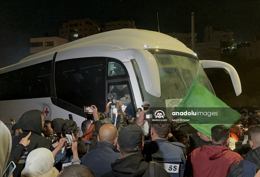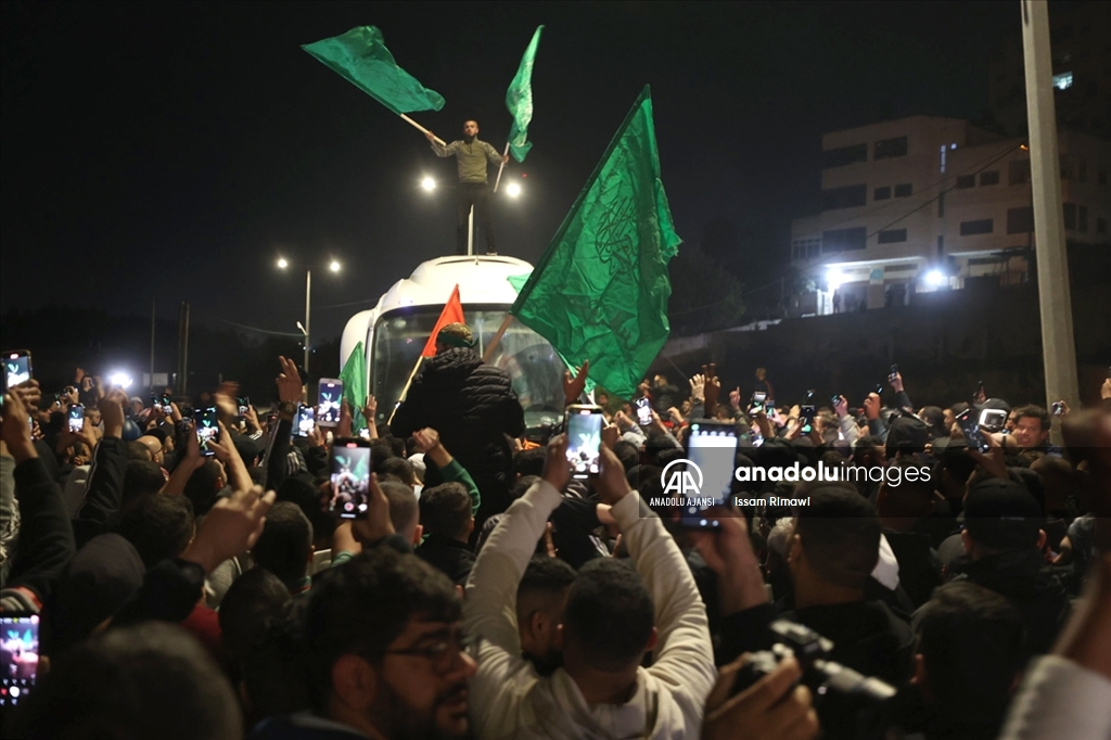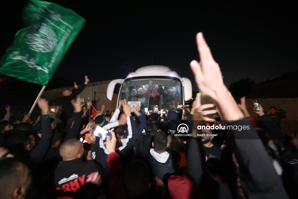 İsrail ile Hamas arasında yapılan esir takası mutabakatı kapsamında İsrail hapishanelerindeki 24'ü kadın 15'i de 18 yaş altı çocuk olan 39 Filistinli esir serbest bırakıldı. Kızılhaç'a aile araçla Batı Şeria'nın Betunya Beldesi'ne ulaşan Filistinliler, yüzlerce kişi tarafından coşkuyla karşılandı. ( Issam Rimawi - Anadolu Ajansı )Issam Rimawi