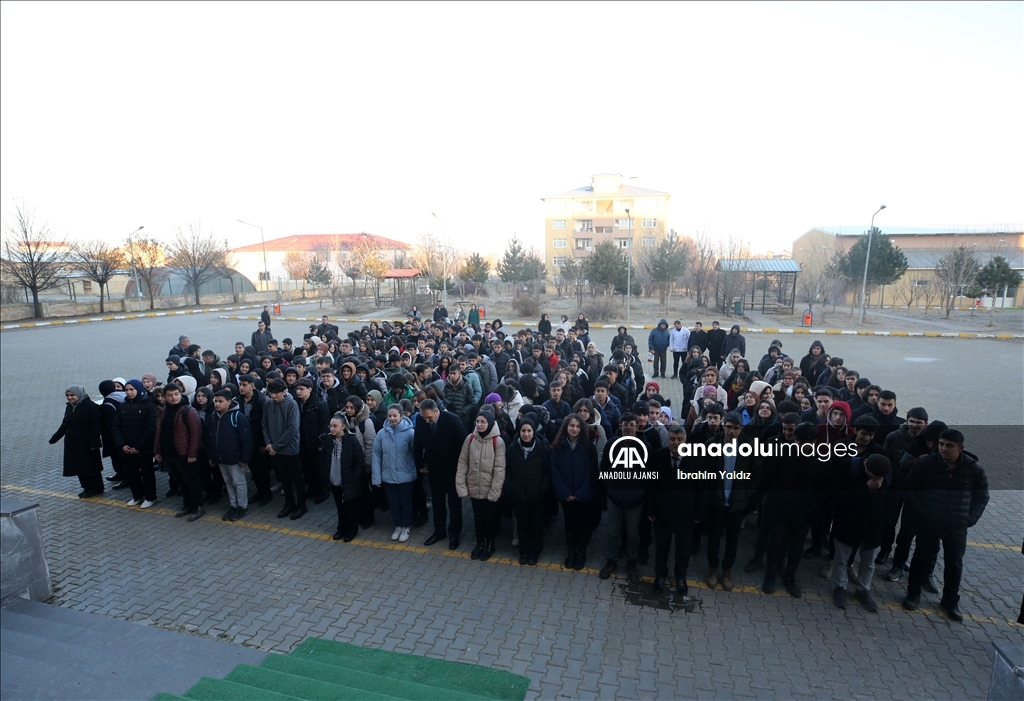 Ağrı'daki tüm okullarda şehitler için bir dakikalık saygı duruşunda bulunuldu