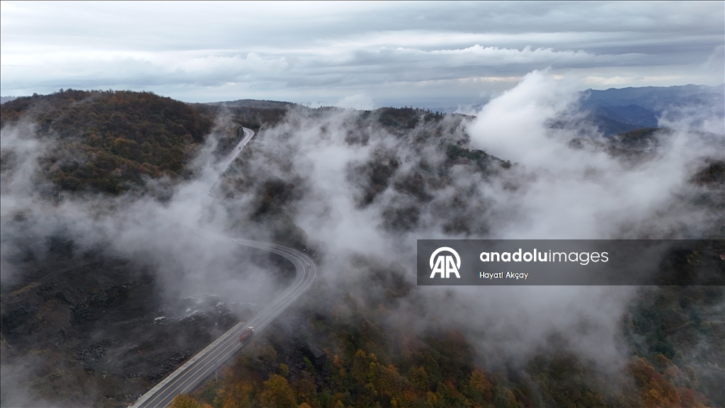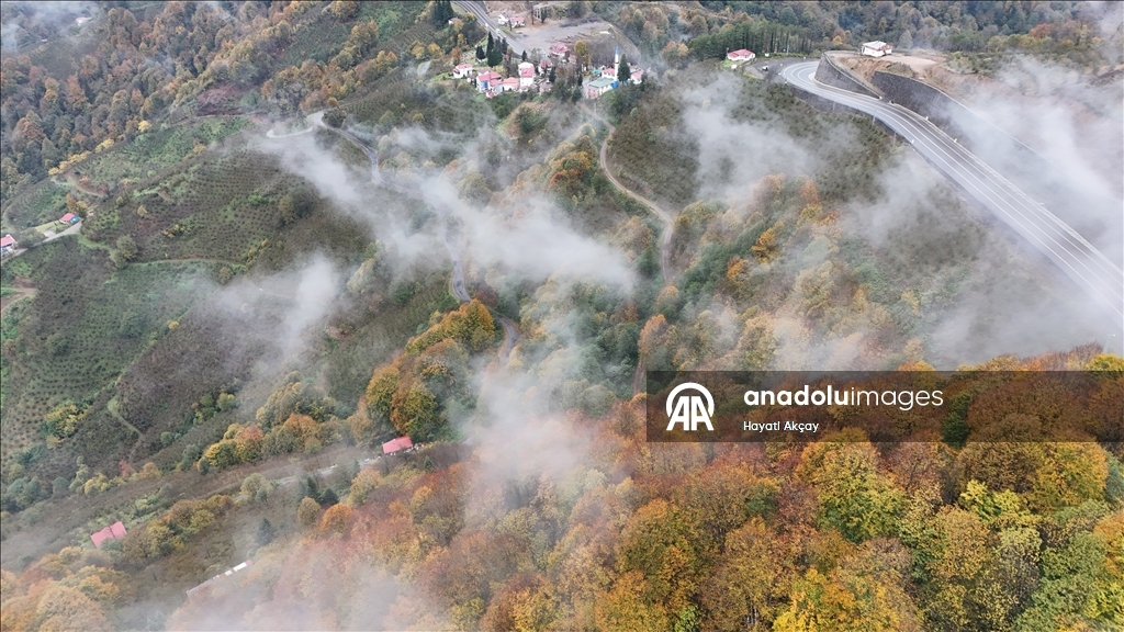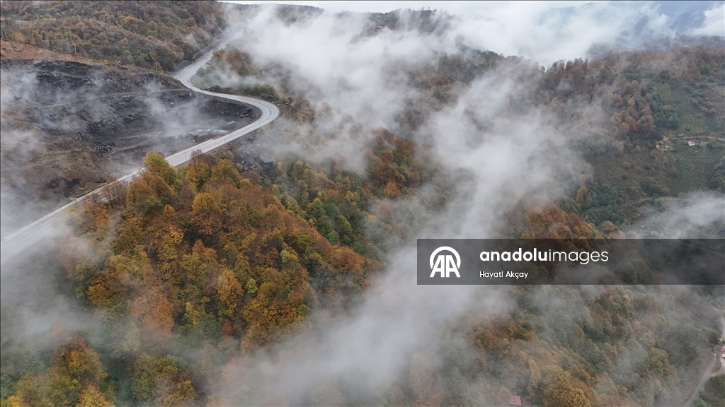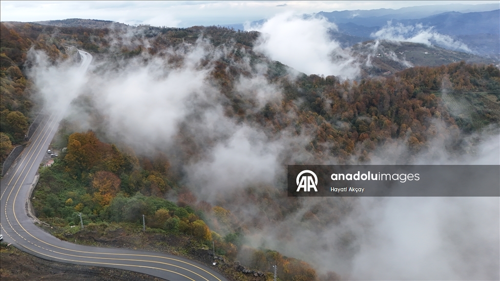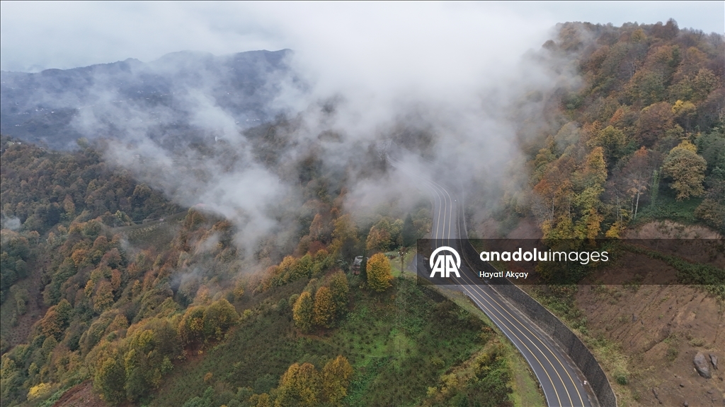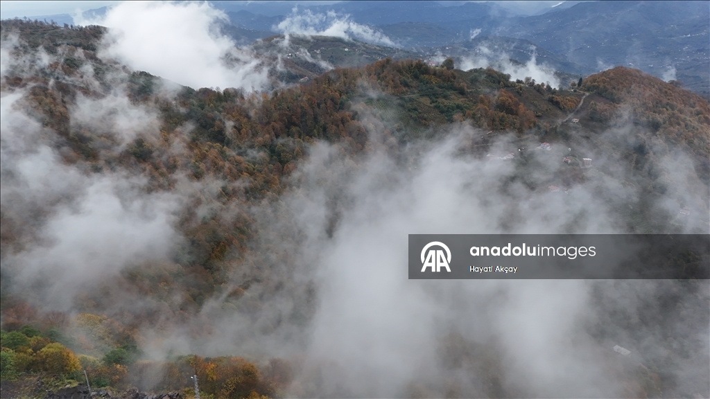 Ordu'nun yüksek kesimlerinde etkili olan sis, sonbahar renkleriyle güzel görüntü oluşturdu.