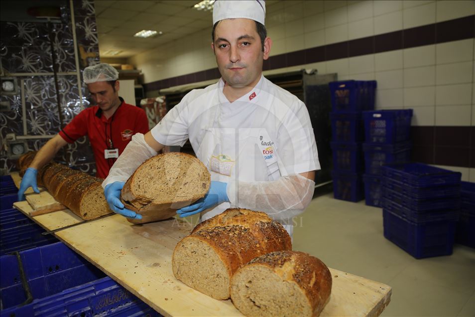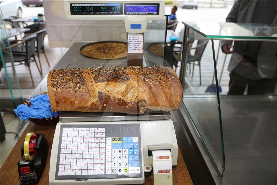 Ordu'da bir işletme tarafından yapılan ve "Osmanlı ekmeği" olarak bilinen ekmek, fındık ve mısır unu başta olmak üzere 13 farklı tahıl unu ve baharat çeşitleriyle yapıldıktan sonra tartılarak satılıyor.