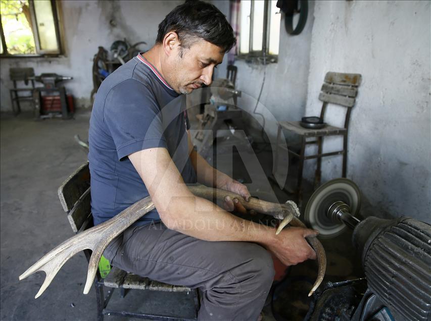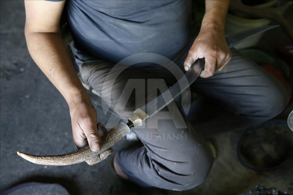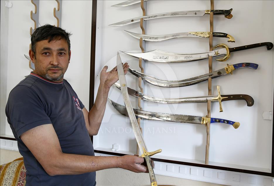 Osmanlı'nın cihan imparatorluğu haline gelmesinde önemli pay sahibi Türk kılıcı "Yatağan", tarihi dizilerin de etkisiyle son yılların en gözde hediyelik eşyaları arasına girdi. Evinin altındaki atölyede üretim yapan kılıç ustası Gürkan Çalhan, AA muhabirine açıklama yaptı. ( Cem Öksüz - Anadolu Ajansı )Cem Öksüz