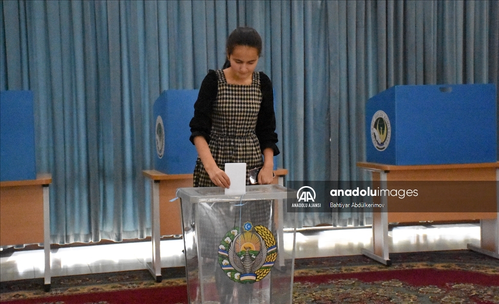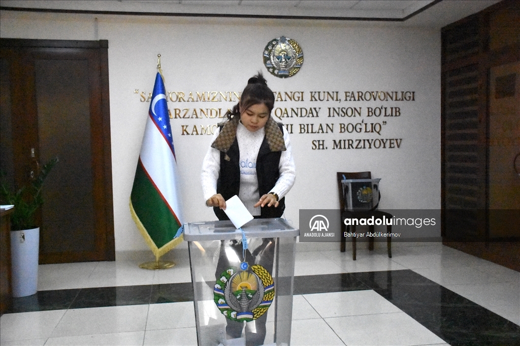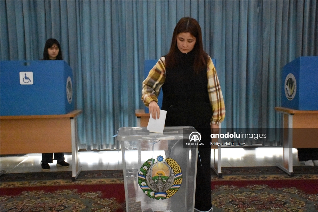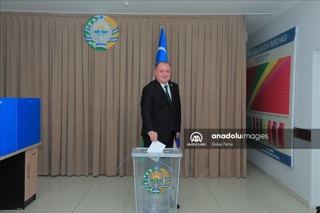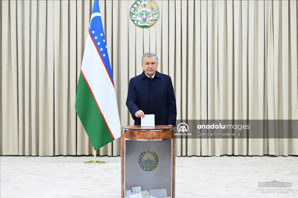 Cumhurbaşkanı Şevket Mirziyoyev (fotoğrafta), seçim sandığına giderek oyunu kullandı. (Özbekistan Cumhurbaşkanlığı - Anadolu Ajansı)Özbekistan Cumhurbaşkanlığı