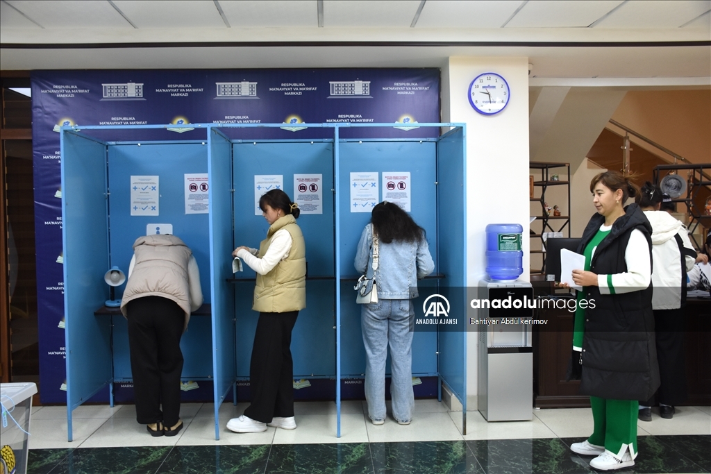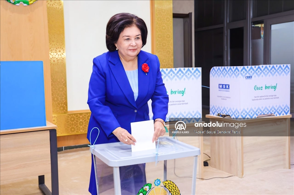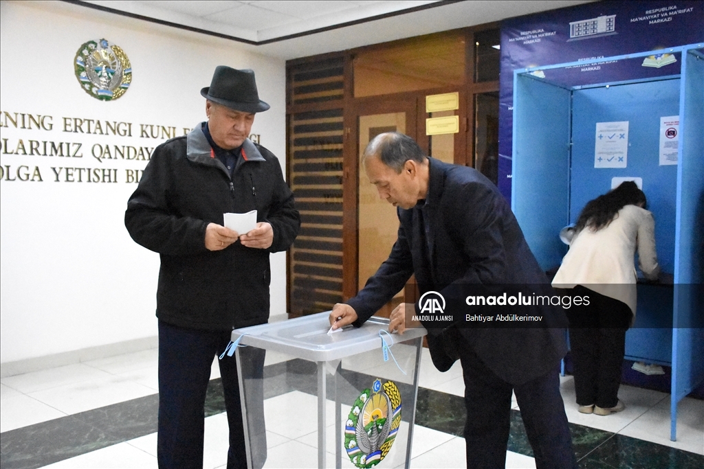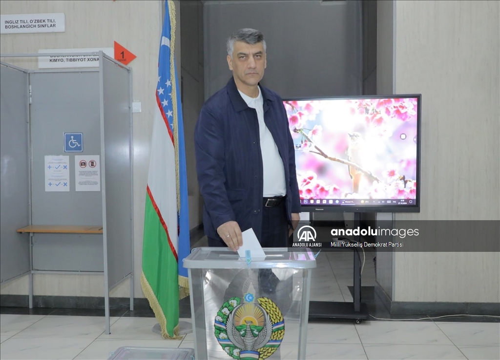 Cumhurbaşkanı Şevket Mirziyoyev (fotoğrafta), seçim sandığına giderek oyunu kullandı. (Özbekistan Cumhurbaşkanlığı - Anadolu Ajansı)Özbekistan Cumhurbaşkanlığı