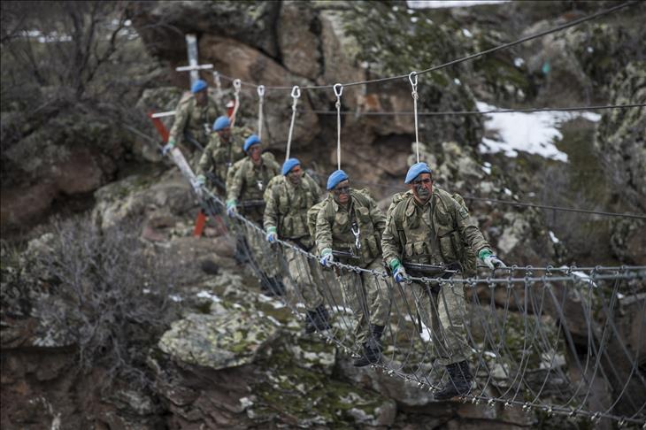 AA TARAFINDAN GORUNTULENEN TSK'NIN EN ETKIN GUCUNU OLUSTURAN KOMANDOLARIN VE ''BORDO BERELILER''IN ZORLU OLDUGU KADAR SASIRTICI EGITIMLERINDEN EN OZEL KARELER ILK KEZ ''OCAK-MEHMETCIGIN DUNYASI'' SERGISINDE KAMUOYUYLA PAYLASILACAK. ANADOLU AJANSI, GENELKURMAY BASKANLIGI'NIN KATKILARIYLA MEHMETCIK'IN YASAMINI 60 KISIDEN OLUSAN GENIS EKIBIYLE GORUNTULEDI. AA'NIN DENEYIMLI HABERCILERI, TSK'YA 28 AYRI MEKANDA FOTOGRAF VE VIDEO CEKIMLERI YAPTI. MEHMETCIK'IN BIRLIGINE KATILDIGI GUNDEN BASLAYARAK ASKERIN TUM YASAM OYKUSUNU YANSITMAYI AMACLAYAN PROJEDE, 35 BIN KARE FOTOGRAF CEKILDI. AA EKIPLERI, BU GORUNTULERI ELDE EDEBILMEK ICIN 2 AY BOYUNCA MEHMETCIK'IN YASAMINA TANIKLIK ETTI. SERGIDE, KAYSERI'NIN MELIKGAZI ILCESI'NDEKI 1. KOMANDO TUGAY KOMUTANLIGI'NDAKI EGITIMLER DE YER ALIYOR. (ANADOLU AJANSI - AYKUT UNLUPINAR) (20130316)AYKUT UNLUPINAR