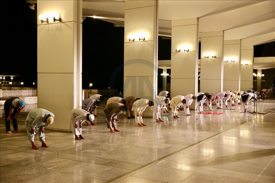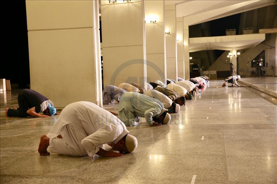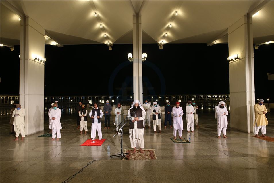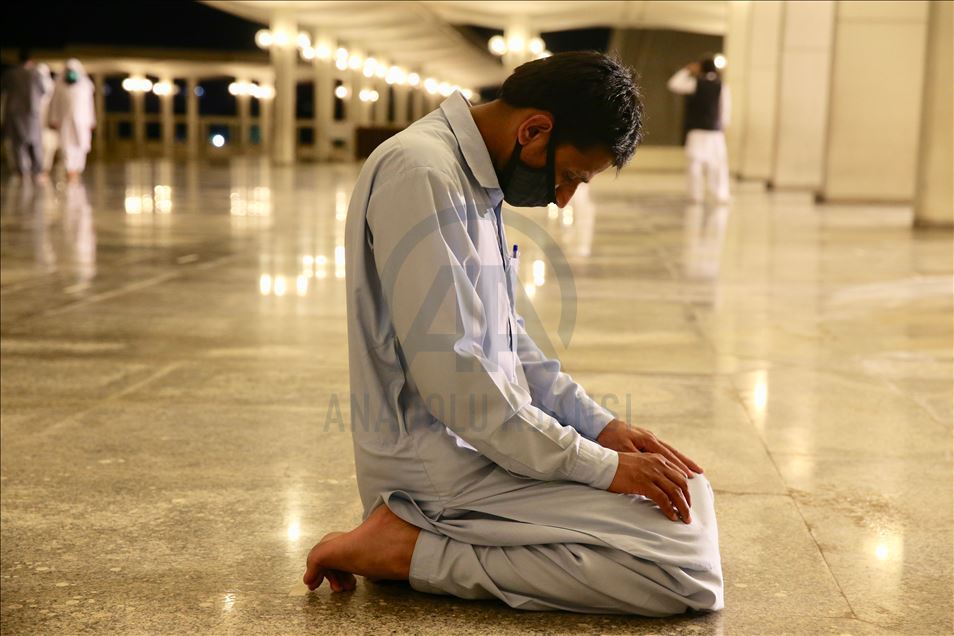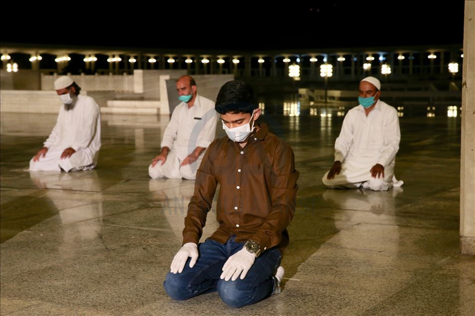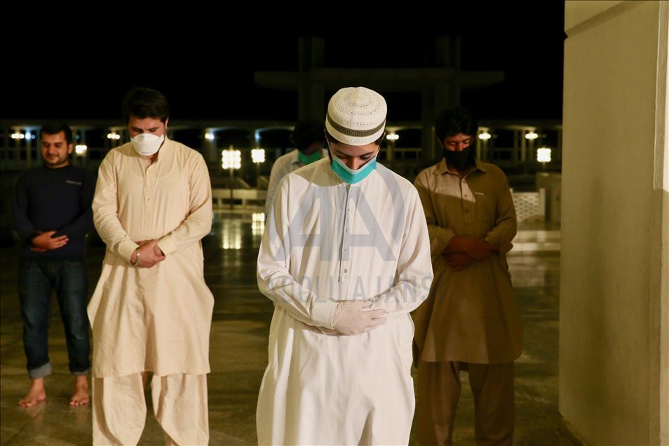 Ramazana yarın tutulacak oruçla başlayacak olan Pakistan'da ilk teravih namazı yeni tip koronavirüs (Kovid-19) önlemleri kapsamında sosyal mesafeye dikkat edilerek ve maske takılarak kılındı. Ülkenin sembol yapılarından başkent İslamabad'daki Faysal Camisi'ne maskesiz cemaat alınmadı, cami girişinde gelenlerin ateşi ölçüldü. Caminin avlusunda kılınan namaz sırasında sosyal mesafe kurallarına dikkat edilirken, geçen yılların aksine az sayıda kişi camiye geldi. ( Muhammed Semih Uğurlu - Anadolu Ajansı )Muhammed Semih Uğurlu