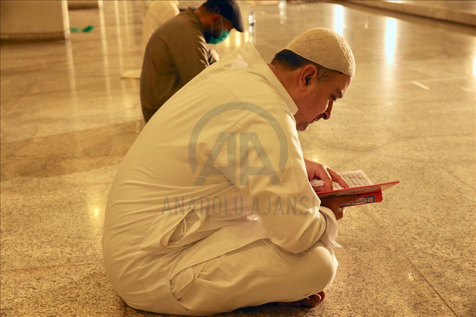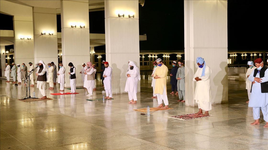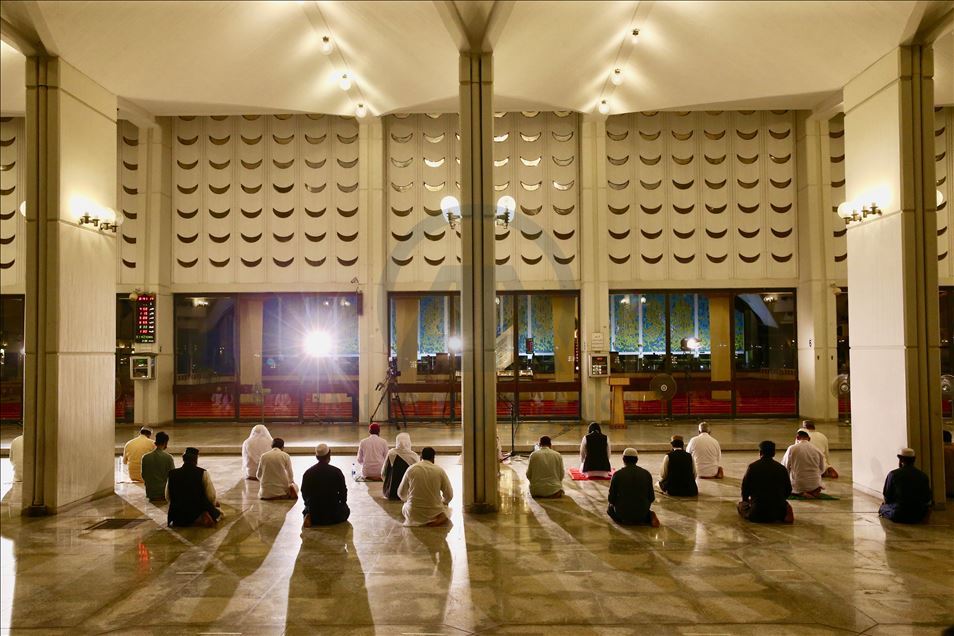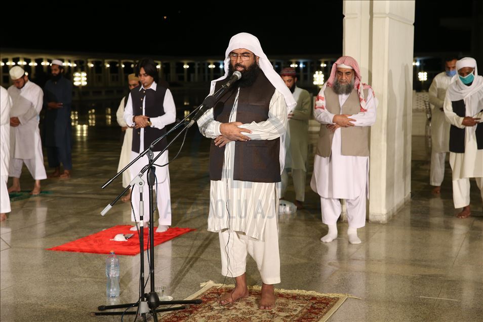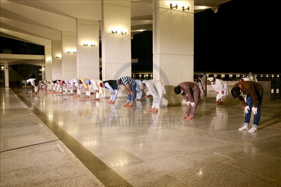 Ramazana yarın tutulacak oruçla başlayacak olan Pakistan'da ilk teravih namazı yeni tip koronavirüs (Kovid-19) önlemleri kapsamında sosyal mesafeye dikkat edilerek ve maske takılarak kılındı. Ülkenin sembol yapılarından başkent İslamabad'daki Faysal Camisi'ne maskesiz cemaat alınmadı, cami girişinde gelenlerin ateşi ölçüldü. Caminin avlusunda kılınan namaz sırasında sosyal mesafe kurallarına dikkat edilirken, geçen yılların aksine az sayıda kişi camiye geldi. ( Muhammed Semih Uğurlu - Anadolu Ajansı )Muhammed Semih Uğurlu