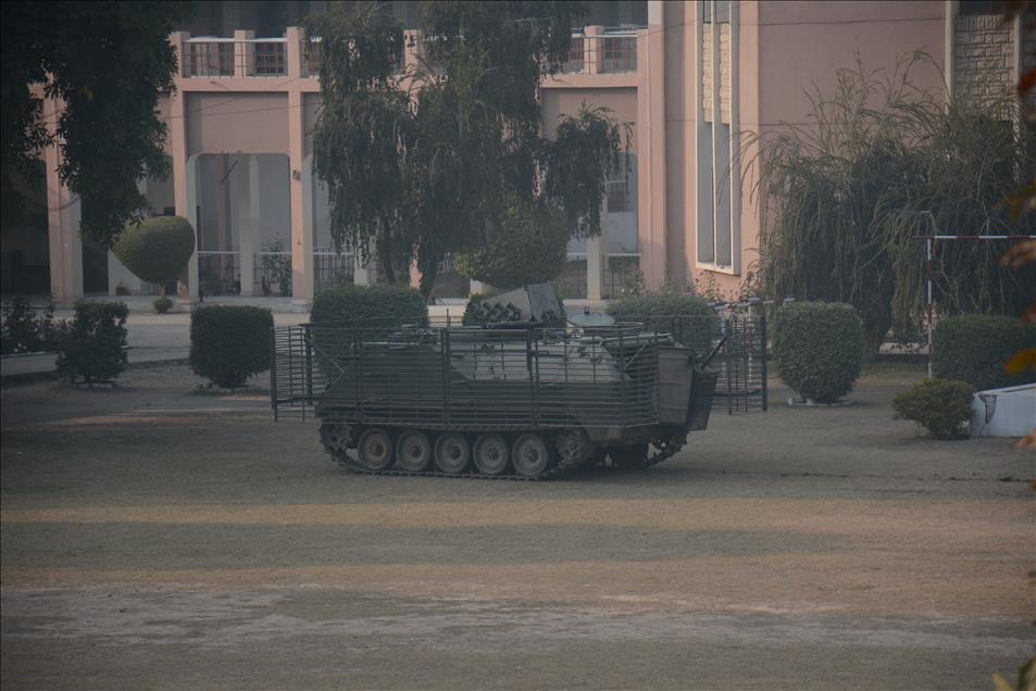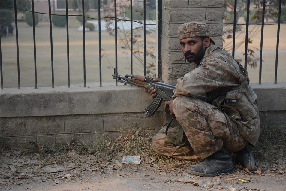 Pakistan'ın Peşaver kentinde Taliban tarafından bir okula düzenlenen baskında son belirlemelere göre çoğu öğrenci 141 kişi hayatını kaybetti, saldırıyı gerçekleştiren 6 militan öldürüldü. Ordu birliklerinin operasyonu sona erdi. Fotoğrafta,saldırının gerçekleştiği okulun bekleyen askerler görülüyor. (Metin Aktas - Anadolu Ajansı)Metin Aktas