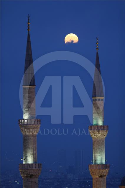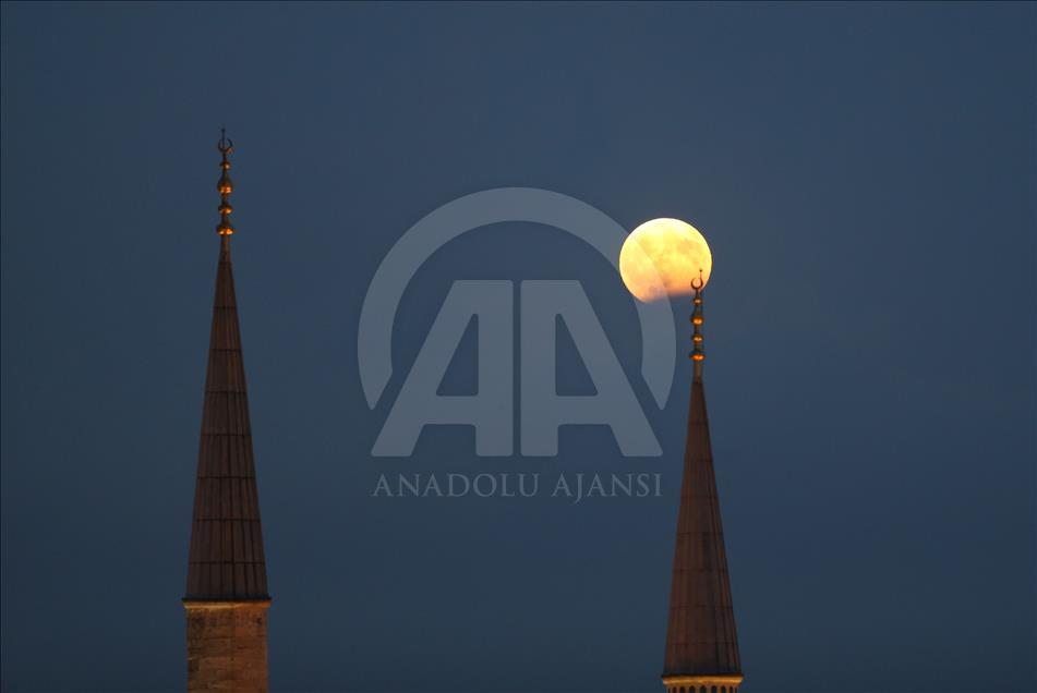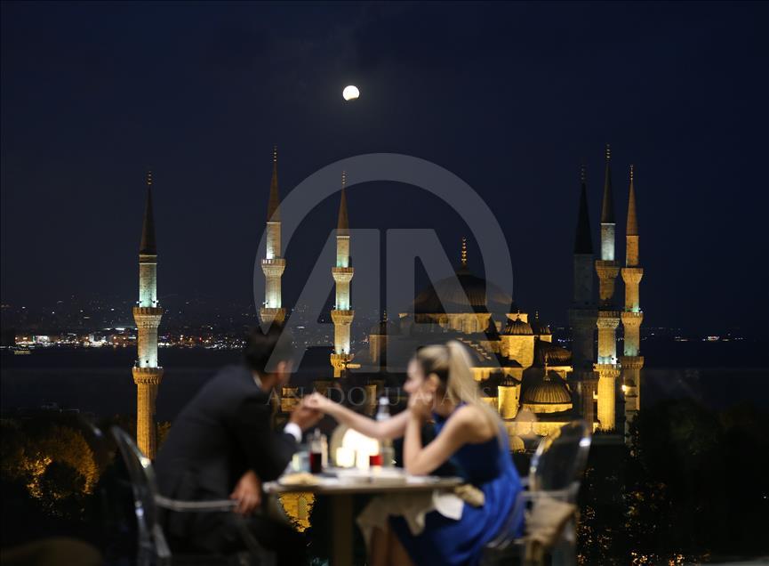 Ayın bakır renginde göründüğü "Parçalı ay tutulması" gerçekleşti. Astronomi meraklılarının bekledikleri tutulma, İstanbul'da da gözlendi. Yerli ve yabancı turistler, tutulmayı Sultanahmet Camisi ile beraber izledi. ( Yasin Aras - Anadolu Ajansı )Yasin Aras