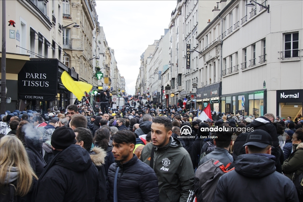 Fransa’nın başkenti Paris’te sarı yelekliler protestolarının 4. yılında eylemciler yeniden sokaklara indi.