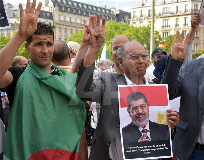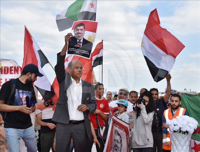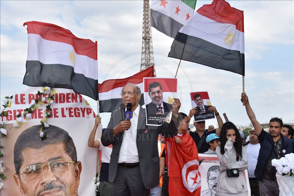 Fransa'nın başkenti Paris'te, 5 gün önce mahkeme salonunda yaşamını yitiren Mısır'ın ilk seçilmiş Cumhurbaşkanı Muhammed Mursi'nin maruz kaldığı haksızlıklar nedeniyle Mısır yönetimi protesto edildi. Gösteriye, eski Tunus Cumhurbaşkanı ve Tunus İrade Hareketi Partisi lideri Muhammed Munsif el-Merzuki de katıldı. ( Yusuf Özcan - Anadolu Ajansı )Yusuf Özcan
