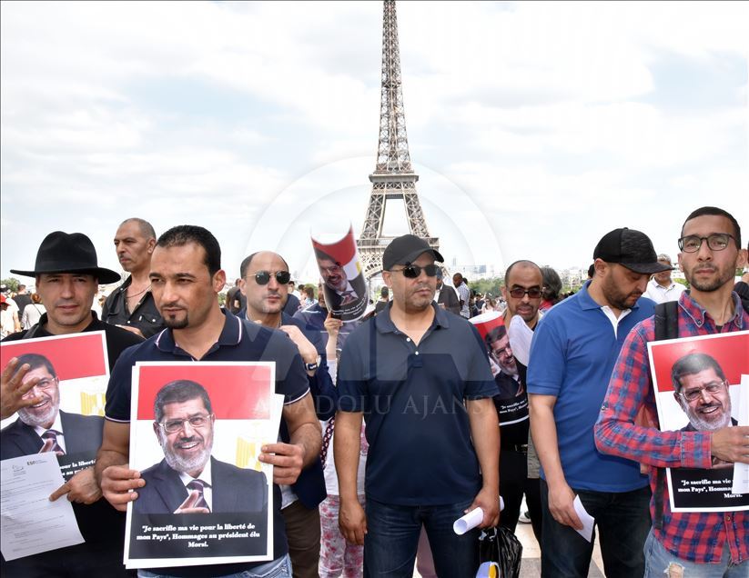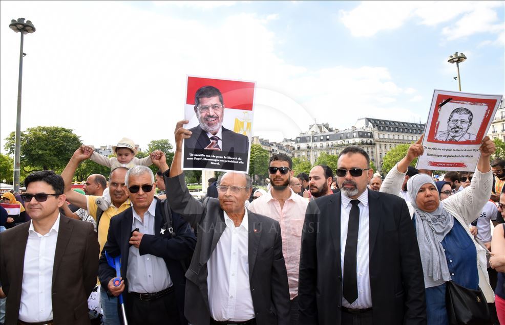 Fransa'nın başkenti Paris'te, 5 gün önce mahkeme salonunda yaşamını yitiren Mısır'ın ilk seçilmiş Cumhurbaşkanı Muhammed Mursi'nin maruz kaldığı haksızlıklar nedeniyle Mısır yönetimi protesto edildi.