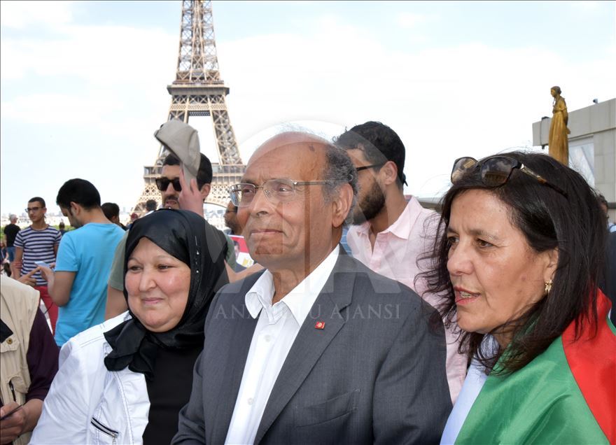 Fransa'nın başkenti Paris'te, 5 gün önce mahkeme salonunda yaşamını yitiren Mısır'ın ilk seçilmiş Cumhurbaşkanı Muhammed Mursi'nin maruz kaldığı haksızlıklar nedeniyle Mısır yönetimi protesto edildi. Gösteriye, eski Tunus Cumhurbaşkanı ve Tunus İrade Hareketi Partisi lideri Muhammed Munsif el-Merzuki (sol 2) de katıldı. ( Yusuf Özcan - Anadolu Ajansı )Yusuf Özcan