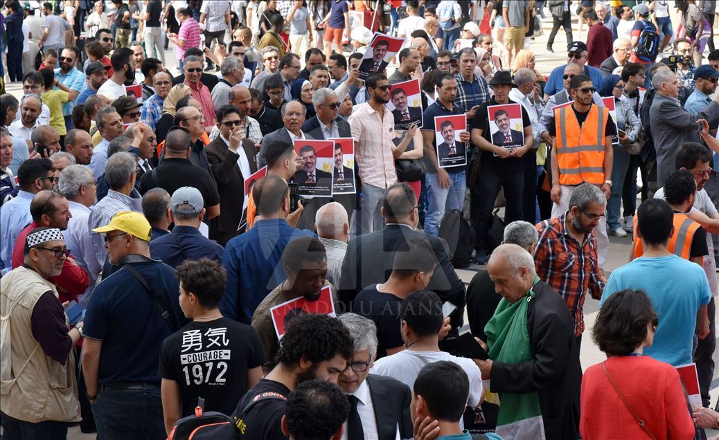 Fransa'nın başkenti Paris'te, 5 gün önce mahkeme salonunda yaşamını yitiren Mısır'ın ilk seçilmiş Cumhurbaşkanı Muhammed Mursi'nin maruz kaldığı haksızlıklar nedeniyle Mısır yönetimi protesto edildi. ( Yusuf Özcan - Anadolu Ajansı )Yusuf Özcan