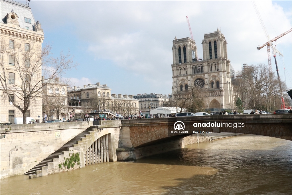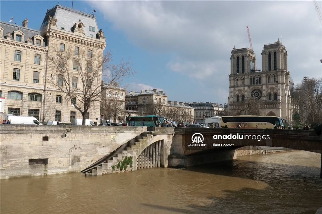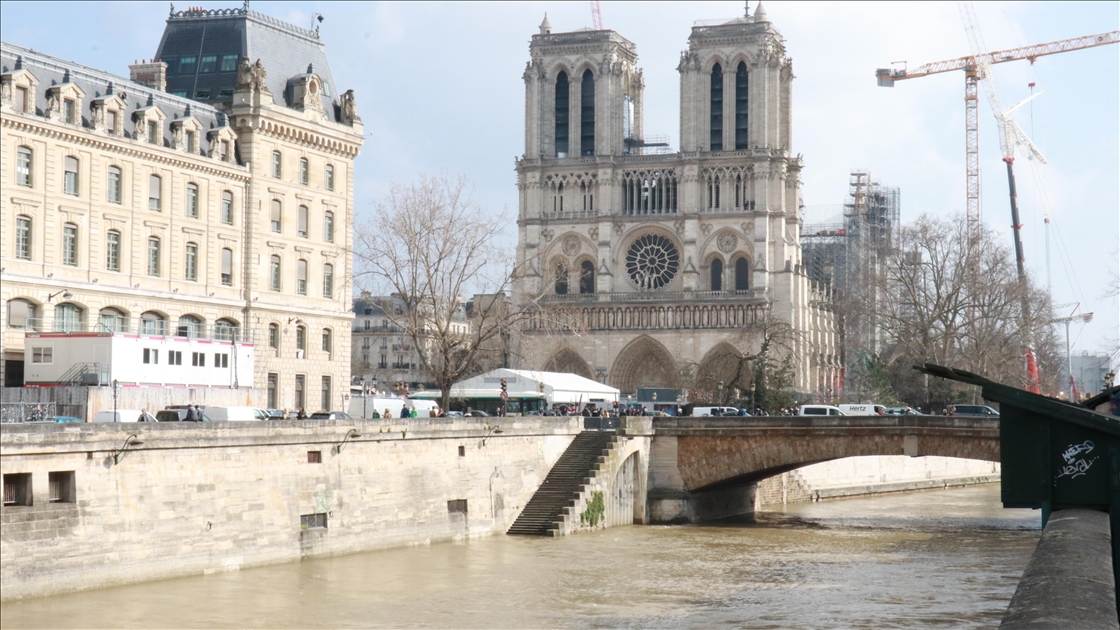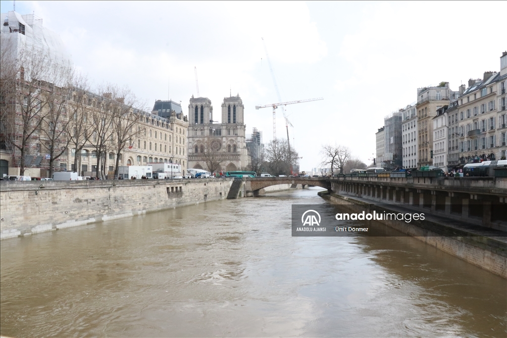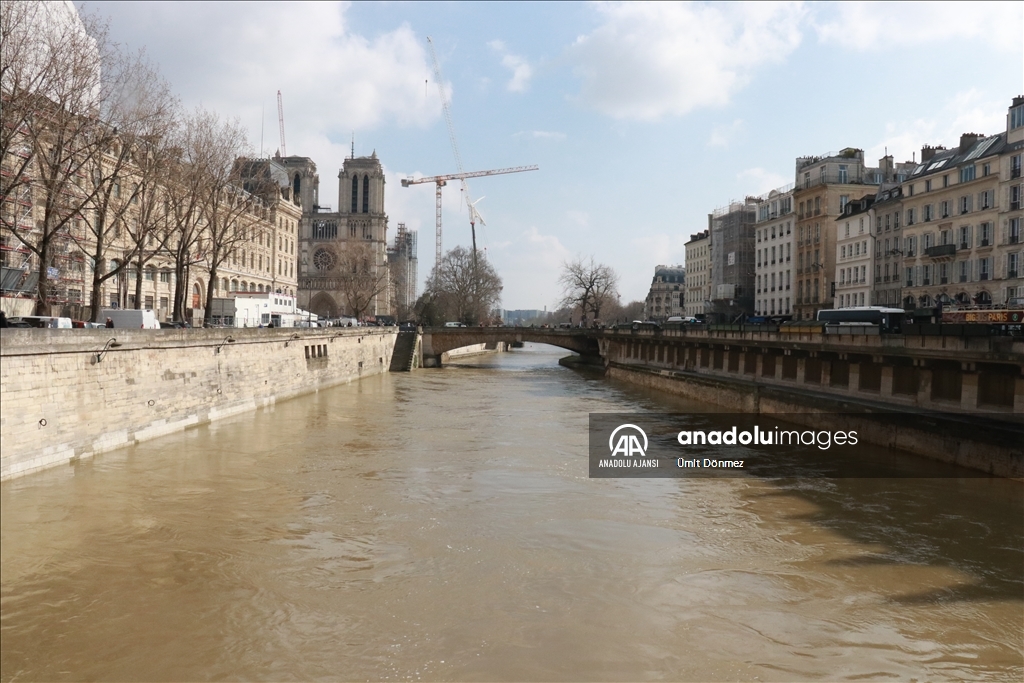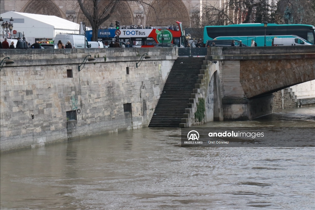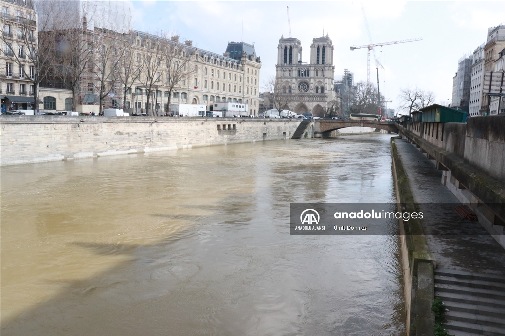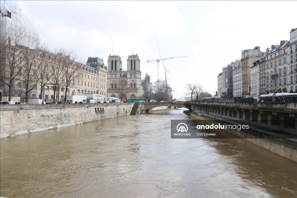 Fransa'nın başkenti Paris'teki Seine Nehri'nin su seviyesi 4 metre sınırını aştı. Notre-Dame de Paris Katedralinin yakınında bulunan 4. bölgede Seine Nehri kıyıları sular altında kaldı. Genellikle yeşil renkte olan nehir, son günlerde kahverengi tonlarına bürünmesiyle dikkat çekiyor.