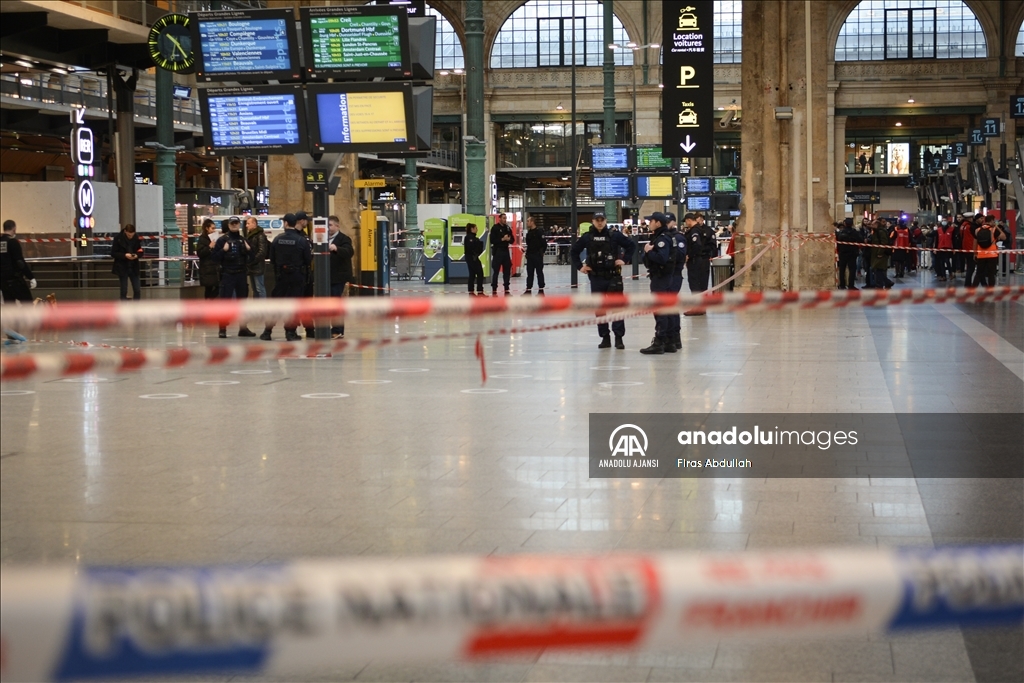 Fransa'nın başkenti Paris'teki Gare du Nord tren istasyonunda bir kişinin bıçaklı saldırısı sonucu 1'i polis 6 kişi yaralandı. Hauts-de-France Bölgesel Ekspres Ulaşımının (TER) Twitter hesabından yapılan açıklamaya göre, Gare du Nord'da TSİ 08.45'te bir kişi elinde bıçakla alandaki yolculara saldırdı. ( Mohamad Alsayed - Anadolu Ajansı )Mohamad Alsayed