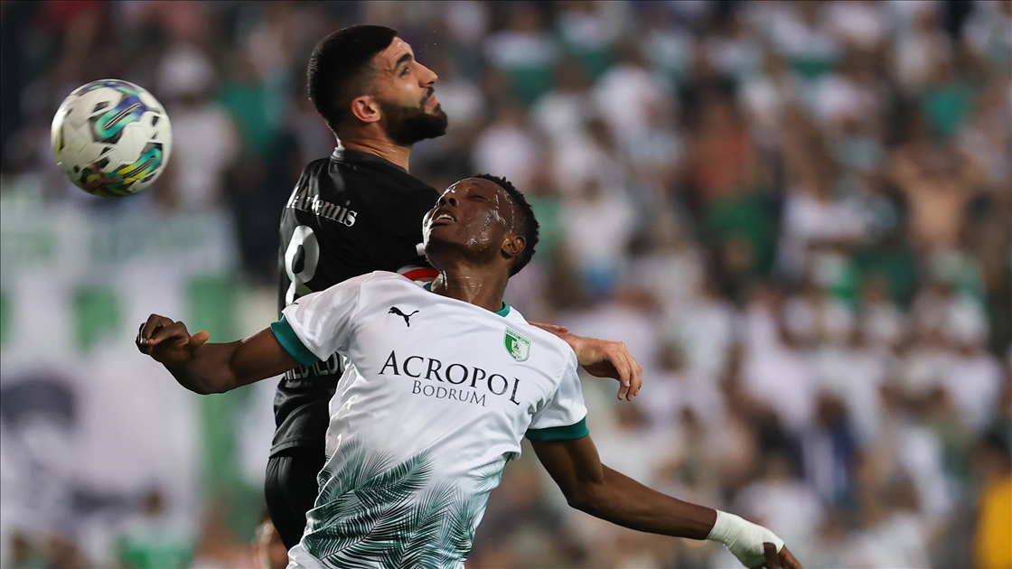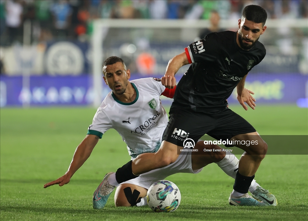 Spor Toto 1. Lig play-off finalinde Pendikspor ile Bodrumspor, Spor Toto Akhisar Stadı'nda karşılaştı. Pendikspor'dan Ahmed Ildız (üstte), bir pozisyonda Bodrumspor'dan Musah Mohammed ile mücadele etti. ( Ömer Evren Atalay - Anadolu Ajansı )Ömer Evren Atalay