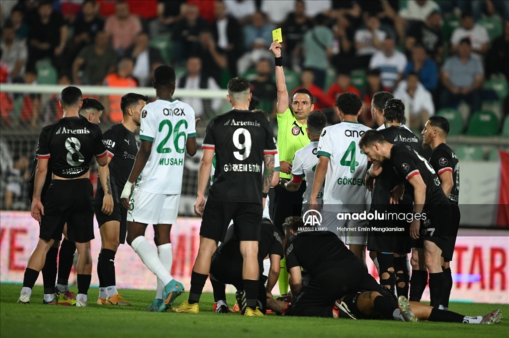 Spor Toto 1. Lig play-off finalinde Pendikspor ile Bodrumspor Spor Toto Akhisar Stadı'nda karşılaştı. Bir pozisyonda hakem Abdülkadir Bitigen sarı kart gösterdi. ( Mehmet Emin Mengüarslan - Anadolu Ajansı )Mehmet Emin Mengüarslan