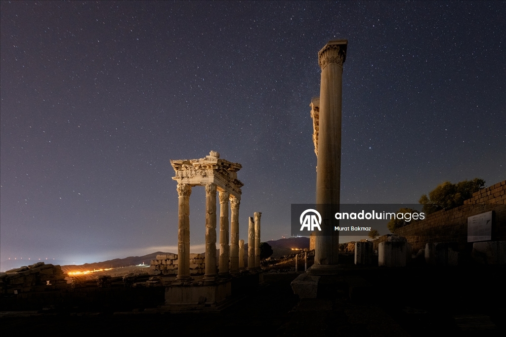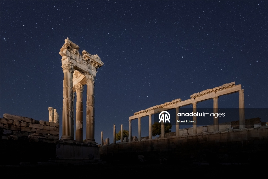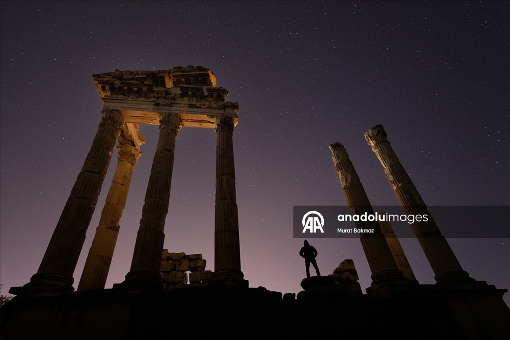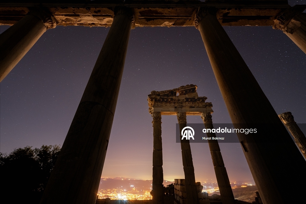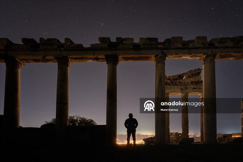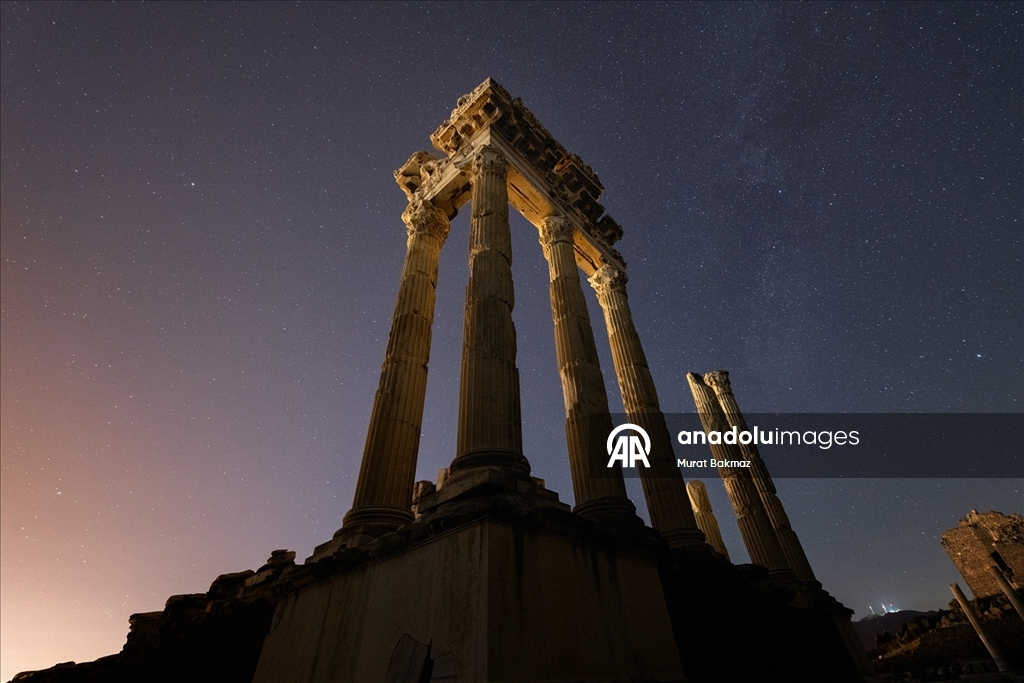 İzmir’in Bergama ilçesinde yer alan ve UNESCO Dünya Mirası Listesi’nde bulunan Pergamon Antik Kenti'ndeki yapılar ve yıldızlar, uzun pozlama tekniğiyle görüntülendi. Tarihi yapılar, yıldızlarla birlikte güzel görüntü oluşturdu.