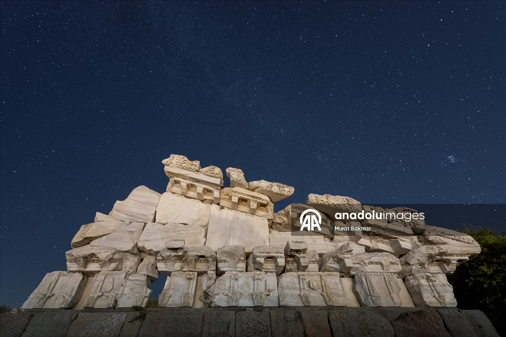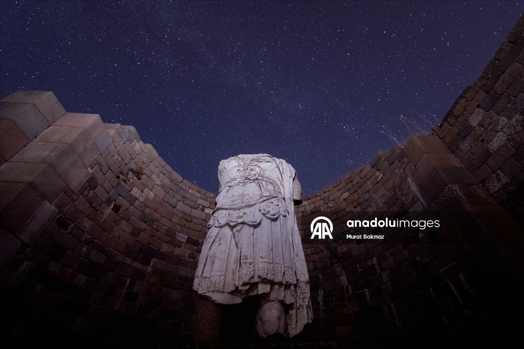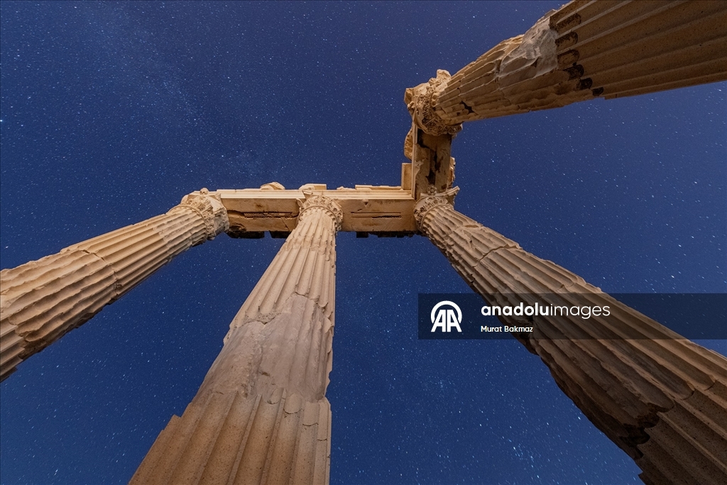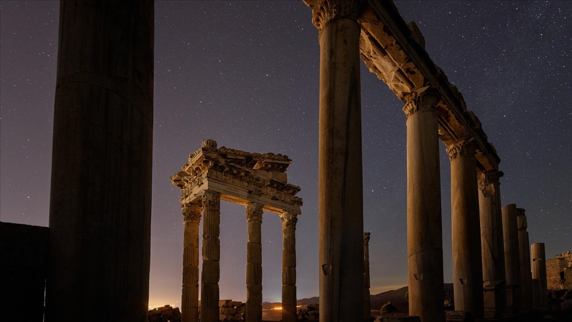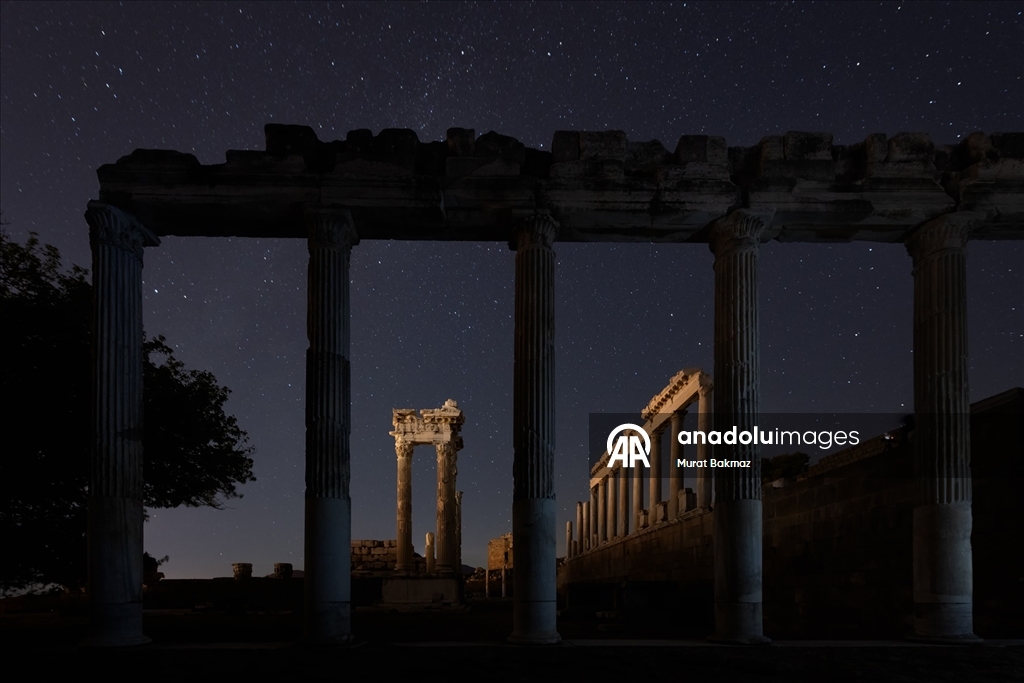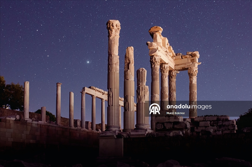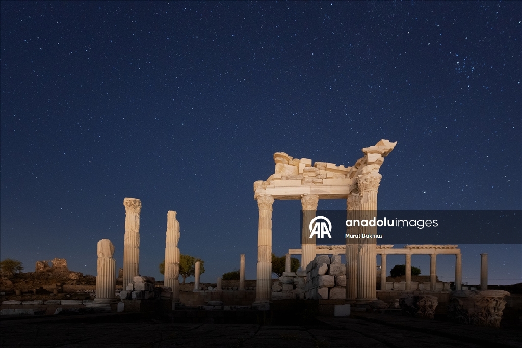 İzmir’in Bergama ilçesinde yer alan ve UNESCO Dünya Mirası Listesi’nde bulunan Pergamon Antik Kenti'ndeki yapılar ve yıldızlar, uzun pozlama tekniğiyle görüntülendi. Tarihi yapılar, yıldızlarla birlikte güzel görüntü oluşturdu.