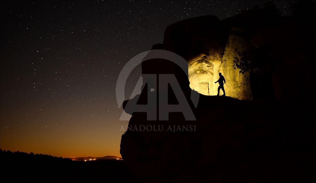 Göktaşı yağmurunun en yoğun olanlarından Perseid, Kütahya'nın Çavdarhisar ilçesinde bulunan Aizonai antik kentinde de izlendi. ( Alibey Aydın - Anadolu Ajansı )Alibey Aydın