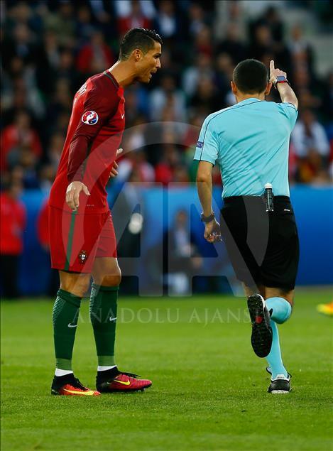 2016 Avrupa Futbol Şampiyonası (EURO 2016) F Grubu'nda Portekiz ve İzlanda, Fransa Saint - Etienne'deki Stat Geoffroy Guichard'de karşılaştı. Portekiz Milli Takımı oyuncusu Cristiano Ronaldo (solda) hakem Cüneyt Çakır'a itiraz etti. ( Evren Atalay - Anadolu Ajansı )Evren Atalay