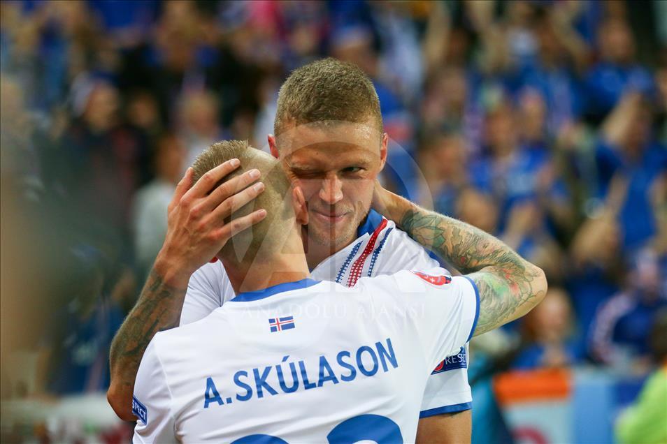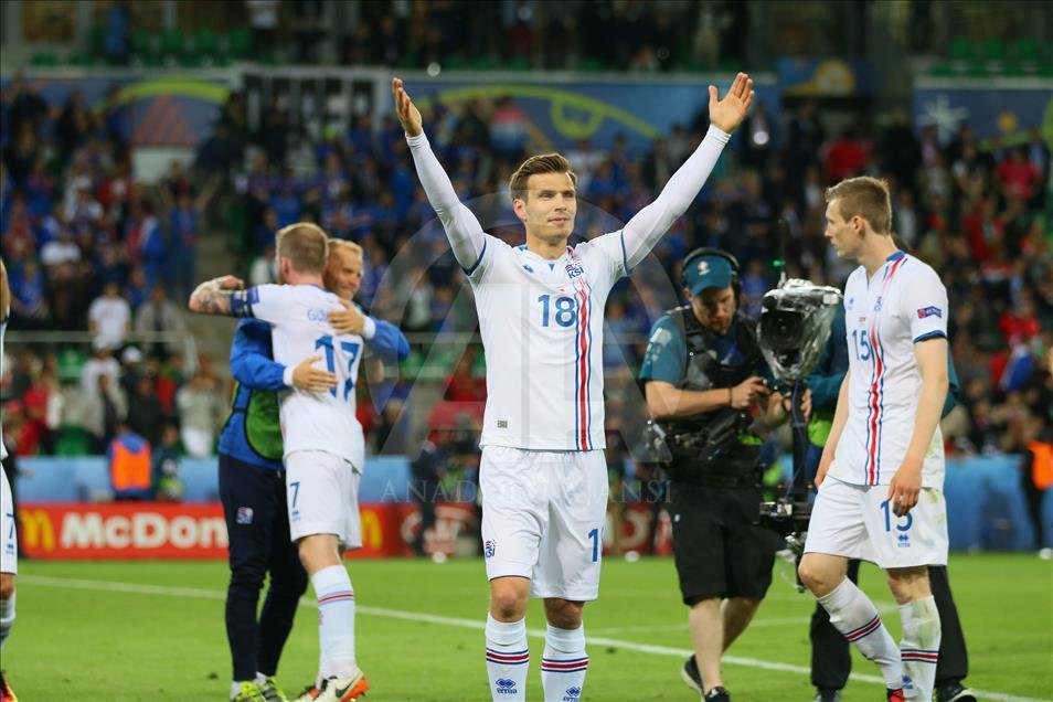 2016 Avrupa Futbol Şampiyonası (EURO 2016) F Grubu'nda Portekiz ve İzlanda, Fransa Saint - Etienne'deki Stat Geoffroy Guichard'de karşılaştı. İzlanda milli takımı futbolcuları karşılaşma sonunda sevinç yaşadı. ( Evren Atalay - Anadolu Ajansı )Evren Atalay