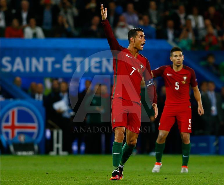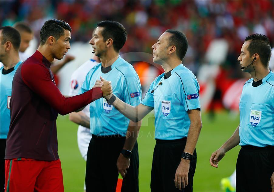 2016 Avrupa Futbol Şampiyonası (EURO 2016) F Grubu'nda Portekiz ve İzlanda, Fransa Saint - Etienne'deki Stat Geoffroy Guichard'de karşılaştı. Karşılaşmayı yöneten Türk Hakem Cüneyt Çakır, Portekiz Milli Takım futbolcusu Cristiano Ronaldo'ya başarı diledi. ( Evren Atalay - Anadolu Ajansı )Evren Atalay