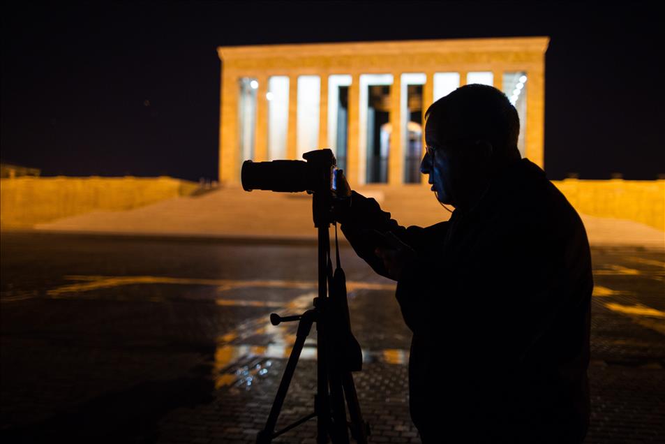 Anadolu Fotoğraf Derneği ve Anıtkabir Komutanlığı işbirliğinde "Bir ışık da sen yak Anıtkabir'de..." sloganıyla 70 fotoğrafçı ziyarete kapalı olduğu saatlerde Büyük Önder Atatürk'ün ebedi istirahatgahını görüntülendi. (Aykut Ünlüpınar - Anadolu Ajansı)Aykut Ünlüpınar