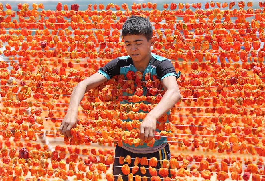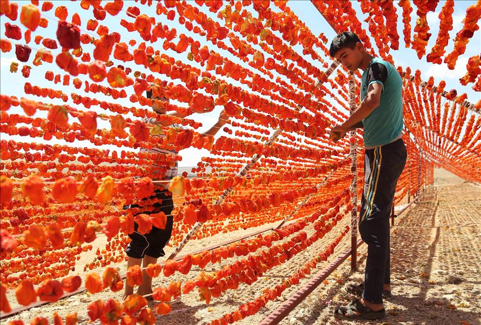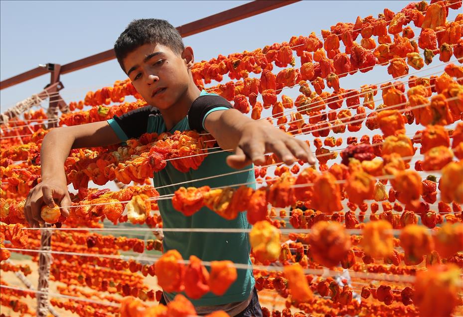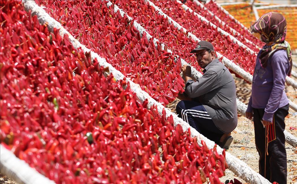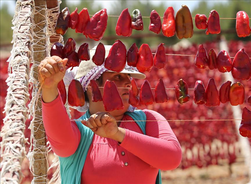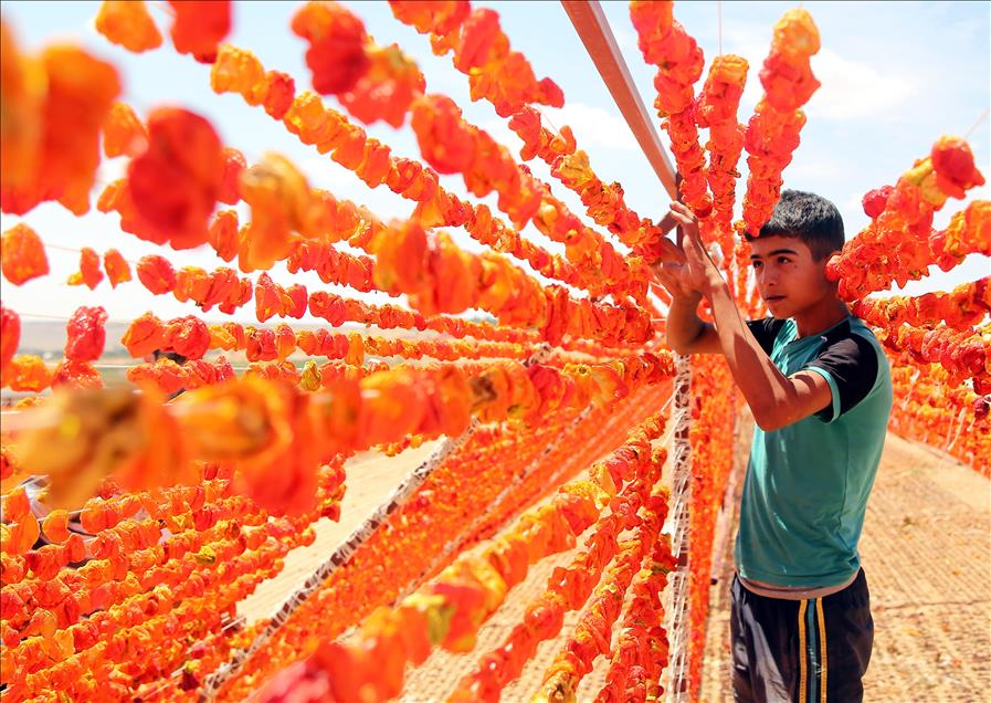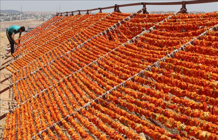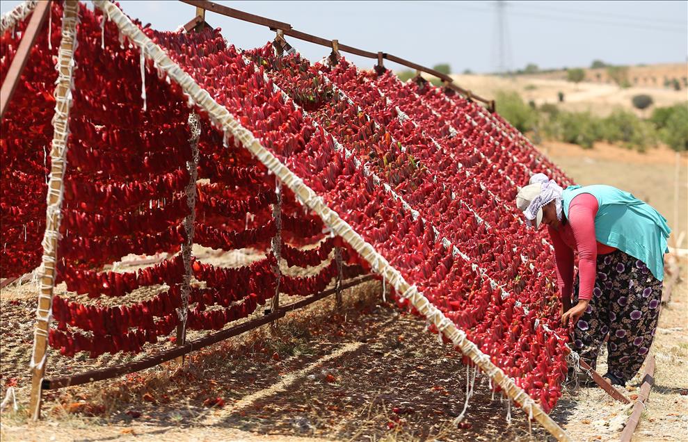 Gaziantep'te ailelerin kışın tüketmek amacıyla hazırladığı kurutmalık sebzeler, son yıllarda geçim kaynağı haline geldi. Ev kadınları ve genç kızlar tarafından hazır hale getirilen patlıcan, biber ve salatalıklar ev, bahçe ve tarlalarda sırıklara dizilerek kurutuluyor. (Orhan Çiçek - Anadolu Ajansı)Orhan Çiçek