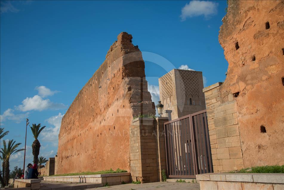 Fas'ın başkenti Rabat'ta görülmesi gereken yerler arasında bulunan Hassan Kulesi, tamamlanmamış bir caminin minaresi. Muvahhid Sultanı Yacoub el Mansour tarafından İslam dünyasının en yüksek minaresi olma iddiasıyla 1195 yılında inşa ettirilmeye başlanan proje, Mansour'un 1199 yılında ölümüyle yarım kalmış. Başlangıçta 86 metre yüksekliğinde planlanan minare 44 metrede kalırken, caminin geri kalanı kısmı da tamamlanamamış. Kırmızı kum taşından yapılmış kulenin yanı sıra caminin tavan desteği olarak düşünülen 200 sütun da avluda dikkati çekmekte. ( Jalal Morchidi - Anadolu Ajansı )Jalal Morchidi