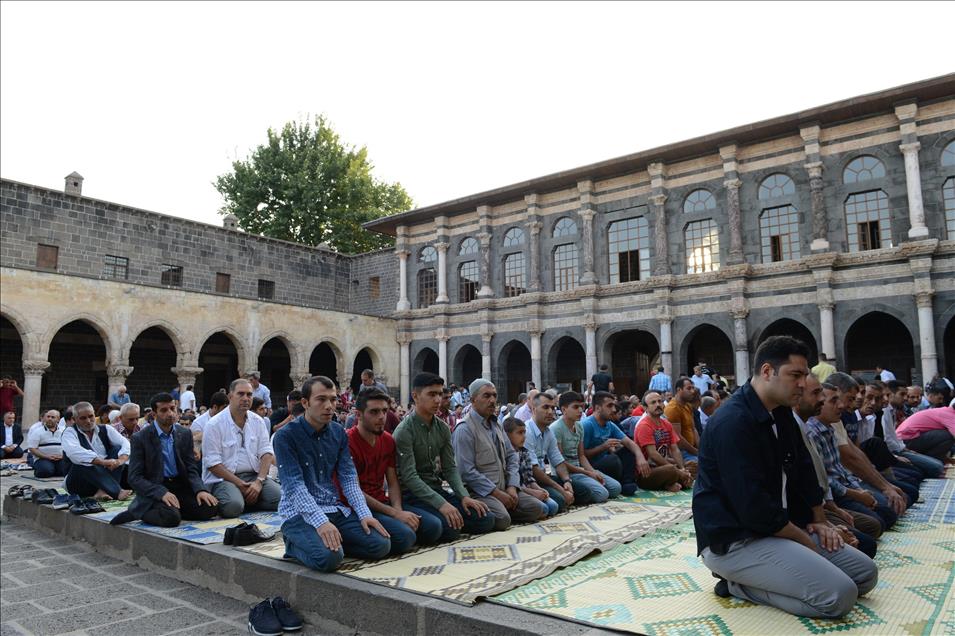 Diyarbakır'da vatandaşlar, Ramazan Bayramı namazı için tarihi Ulu Cami'ne akın etti. Burada, vatandaşlar namaz kılıp dua etti. Gıda Tarım ve Hayvancılık Bakanı Mehdi Eker ve beraberindekiler, namaz sonrası cemaatle bayramlaştı. (Kaan Bozdoğan - Anadolu Ajansı)Kaan Bozdoğan