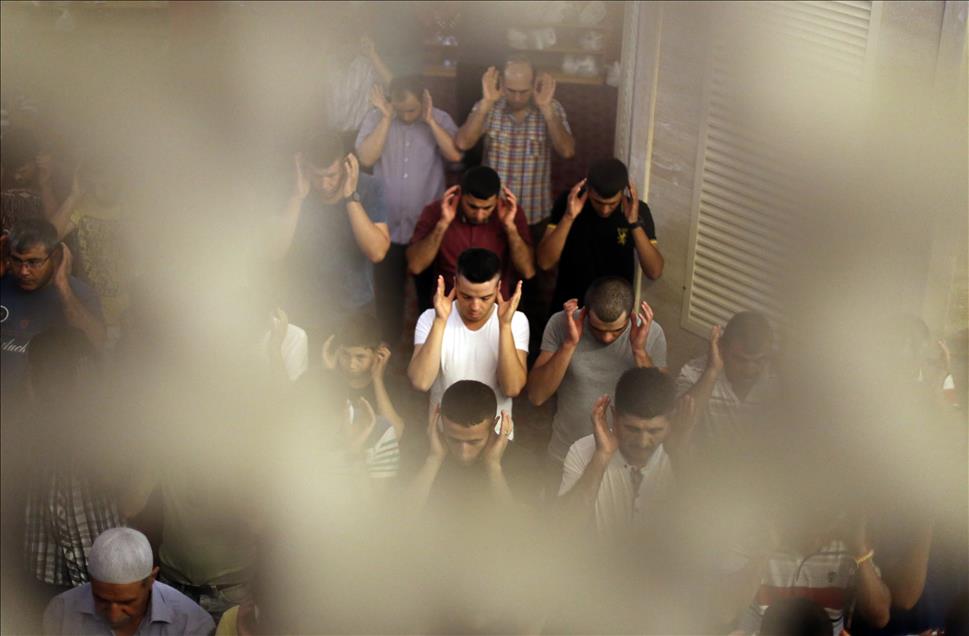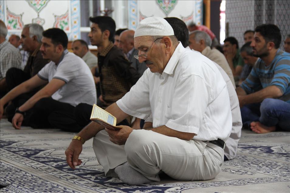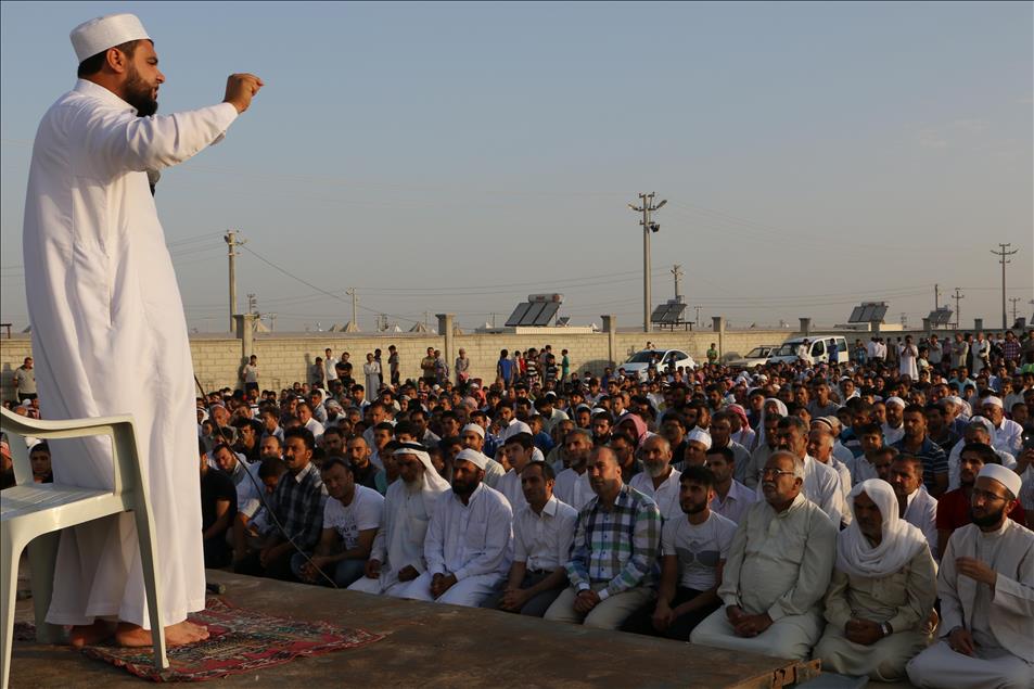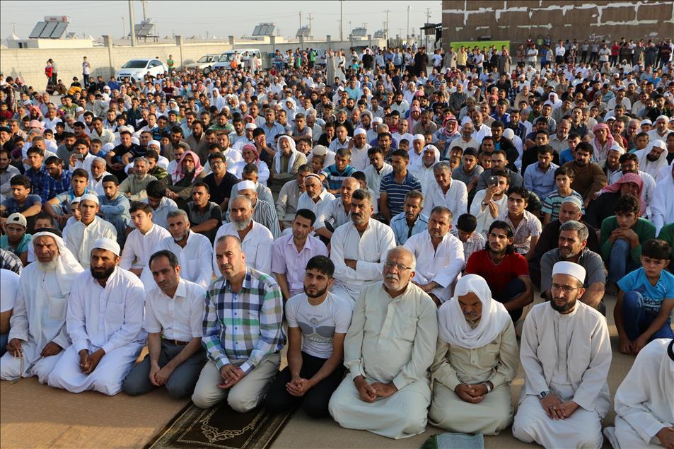 Ülkelerindeki iç savaştan kaçarak Türkiye'ye sığınan Suriyeliler, bayram namazını çadır ve konteyner kentlerde kıldı. Şanlıurfa'nın Akçakale ilçesindeki Süleyman Şah Konaklama Tesislerinde yaşayan Suriyeliler, vatanlarından uzakta bir bayram namazını daha kılmanın burukluğunu yaşadı. (Müslüm Etgü - Anadolu Ajansı)Müslüm Etgü