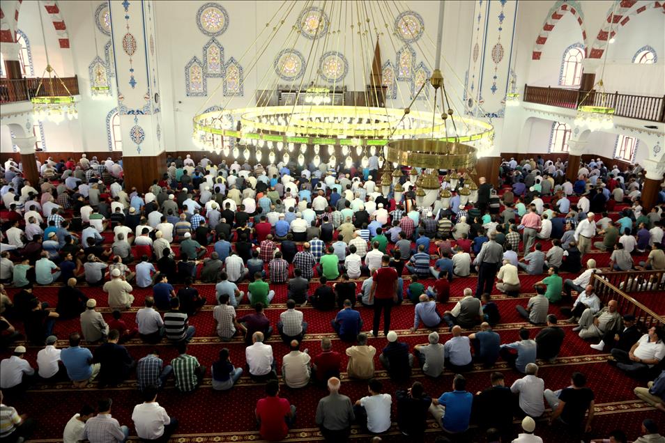 İzmir'de çok sayıda vatandaş, bayram namazını kılmak için Hisar Camisi'ni doldurdu. (Şafak Yel - Anadolu Ajansı)Şafak Yel