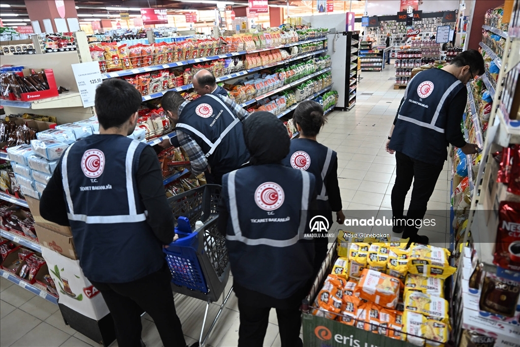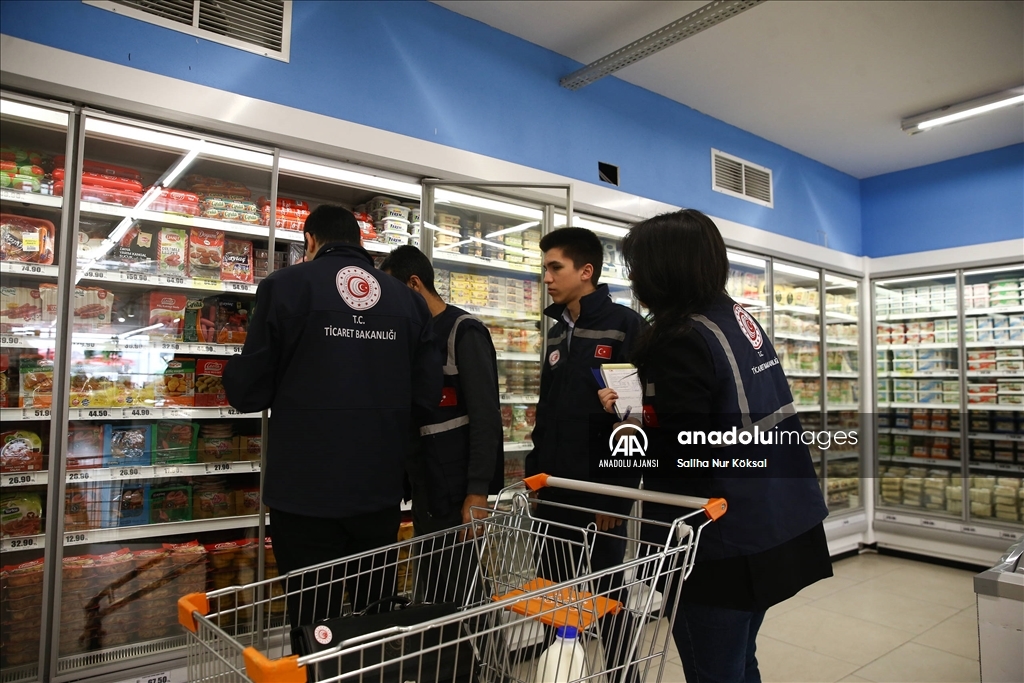 Gıdadan temizlik ürünlerine kadar birçok ürünün fiyatlarını inceleyen ekipler, kasaya giderek, fiyat değişimi olup olmadığını da kontrol etti. (Adsız Günebakan - Anadolu Ajansı)Adsız Günebakan