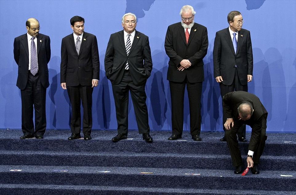 ABD'NIN PITTSBURGH KENTINDE YAPILAN G-20 ZIRVESI'NDE, OTURUMUN ARDINDAN LIDERLER GELENEKSEL AILE FOTOGRAFI CEKTIRDI. AILE FOTOGRAFI CEKIMI SIRASINDA LIDERLERIN YERLERINI GOSTERMELERI ICIN ZEMINE ULKE BAYRAKLRI YERLESTIRILDI. BASBAKAN RECEP TAYYIP ERDOGAN, YERDE BULUNAN TURK BAYRAGINI ALARAK CEKETININ IC CEBINE KOYDU. (ANADOLU AJANSI - TOLGA ADANALI) (20090925) TOLGA ADANALI