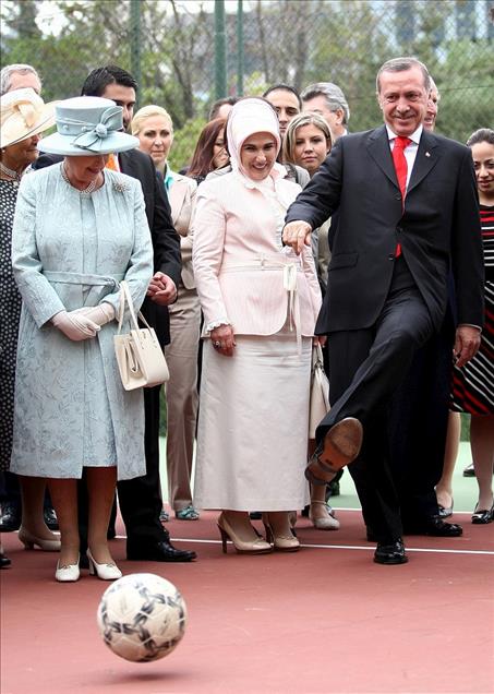 2003 yılından bu yana Başbakanlık görevini yürüten AK Parti Genel Başkanı Recep Tayyip Erdoğan, Cumhuriyet tarihinde ilk kez halk tarafından seçilen Cumhurbaşkanı oldu. 3 adayın yarıştığı ve 52 milyon 894 bin seçmenin oy kullandığı seçimde Erdoğan oyların yüzde 51.85’ini alarak siyası yaşamında yeni bir başarıya daha imza attı. Siyasi kariyeri boyunca il başkanlığı, belediye başkanlığı, milletvekilliği ve başbakanlık görevlerini icra eden Erdoğan, bundan sonra 12. Cumhurbaşkanı olarak Çankaya Köşkü’ne ev sahipliği yapacak. Erdoğan, İngiltere Kraliçesi II. Elizabeth'in doğum günü için verilen resepsiyonda İngiltere Büyükelçiliği'nde bulunan halı sahada futbol topuyla şut çekti. (Arşiv) (Fırat Yurdakul - Anadolu Ajansı)Fırat Yurdakul