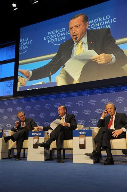 2003 yılından bu yana Başbakanlık görevini yürüten AK Parti Genel Başkanı Recep Tayyip Erdoğan, Cumhuriyet tarihinde ilk kez halk tarafından seçilen Cumhurbaşkanı oldu. 3 adayın yarıştığı ve 52 milyon 894 bin seçmenin oy kullandığı seçimde Erdoğan oyların yüzde 51.85’ini alarak siyası yaşamında yeni bir başarıya daha imza attı. Siyasi kariyeri boyunca il başkanlığı, belediye başkanlığı, milletvekilliği ve başbakanlık görevlerini icra eden Erdoğan, bundan sonra 12. Cumhurbaşkanı olarak Çankaya Köşkü’ne ev sahipliği yapacak. Başbakan Erdoğan, 29 Ocak 2009'da Davos'ta İsrail Başbakanı Simon Peres'in de bulunduğu Ekonomik Forumu kapsamında "Gazze Orta Doğu'da Barış Modeli" oturumunda "one minute" olayı ile hatırlanan sert sözler sarfederek zirveyi terketti. (Arşiv) (Yasin Aras - Anadolu Ajansı)Yasin Aras