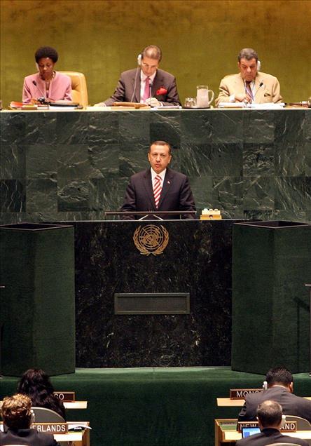 2003 yılından bu yana Başbakanlık görevini yürüten AK Parti Genel Başkanı Recep Tayyip Erdoğan, Cumhuriyet tarihinde ilk kez halk tarafından seçilen Cumhurbaşkanı oldu. 3 adayın yarıştığı ve 52 milyon 894 bin seçmenin oy kullandığı seçimde Erdoğan oyların yüzde 51.85’ini alarak siyası yaşamında yeni bir başarıya daha imza attı. Siyasi kariyeri boyunca il başkanlığı, belediye başkanlığı, milletvekilliği ve başbakanlık görevlerini icra eden Erdoğan, bundan sonra 12. Cumhurbaşkanı olarak Çankaya Köşkü’ne ev sahipliği yapacak. Başbakan Recep Tayyip Erdoğan, BM'in 28 Eylül 2008'de yapılan 62. Genel Kurulu'nda bir konuşma yaptı. (Arşiv) (Kayhan Özer - Anadolu Ajansı)Kayhan Özer