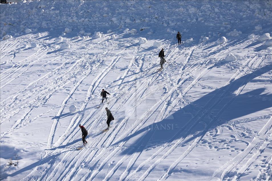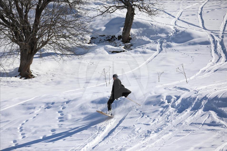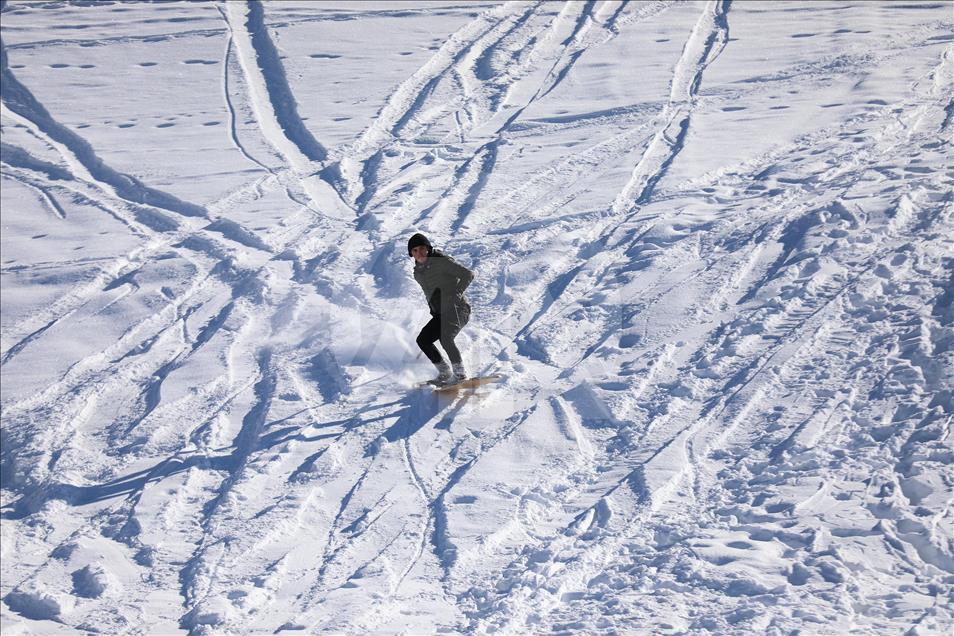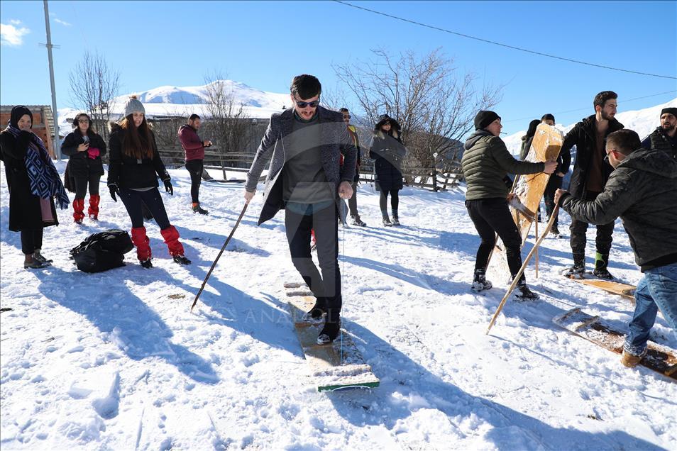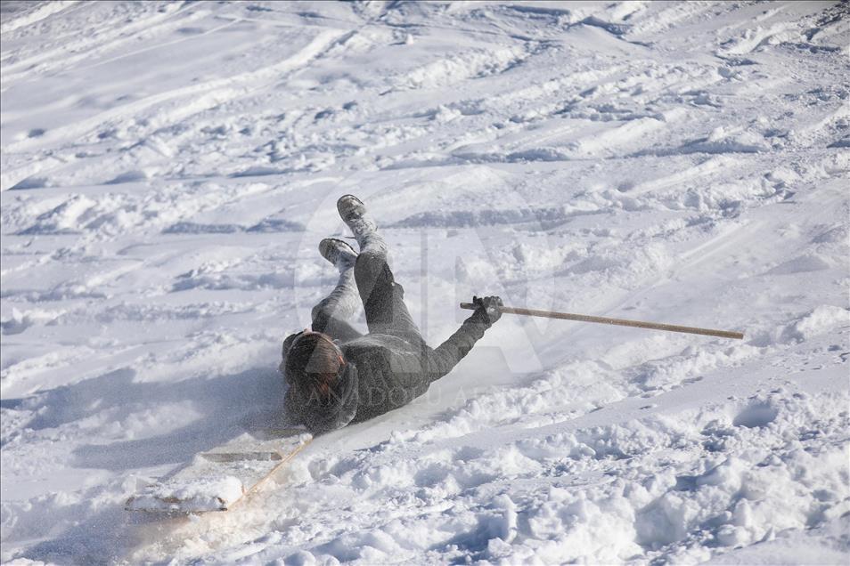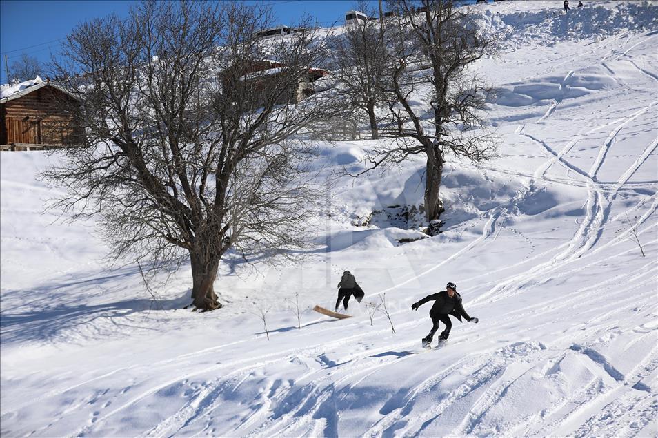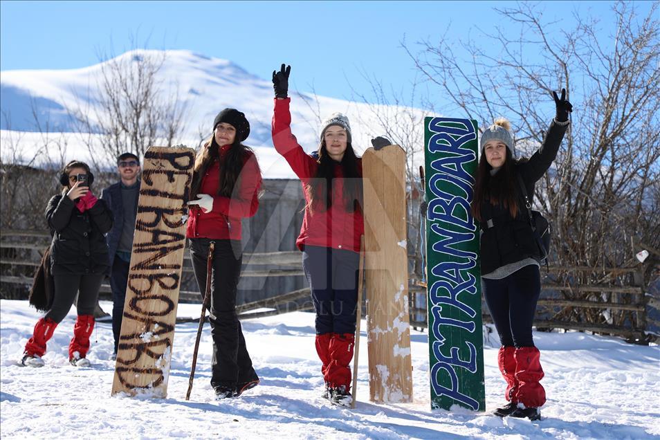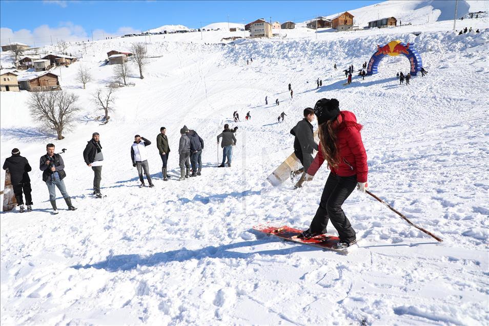Rize'nin İkizdere ilçesindeki Petran Yaylası'nda bu yıl 12'incisi düzenlenen Petranboard Kayak Şenliği, renkli görüntülere sahne oldu. Etkinliğe katılanlar, yörede "petranboard" ya da "lazboard" adı verilen tahtalarla kayak yapmaya çalışırken renkli görüntüler ortaya çıktı.