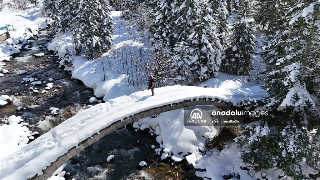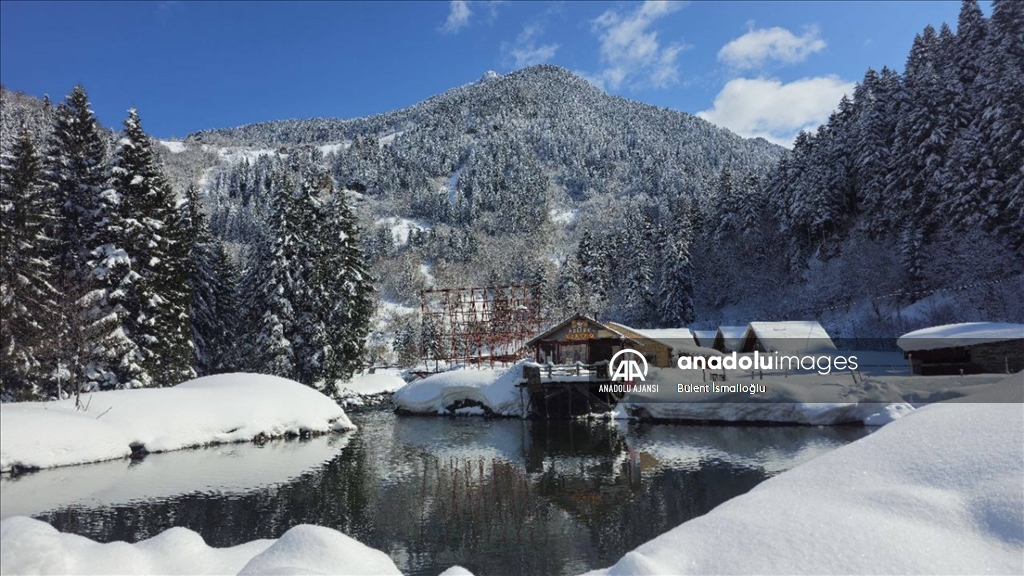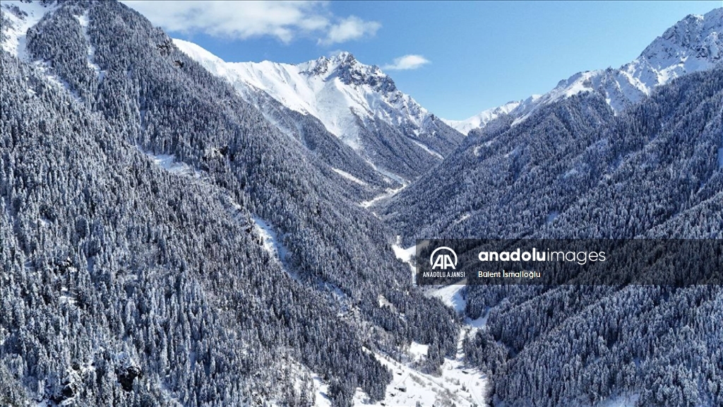 Rize'nin Çamlıhemşin ilçesine bağlı Çat köyü, Elevit ve Verçenik vadisi, kar yağışının ardından beyaz büründü.