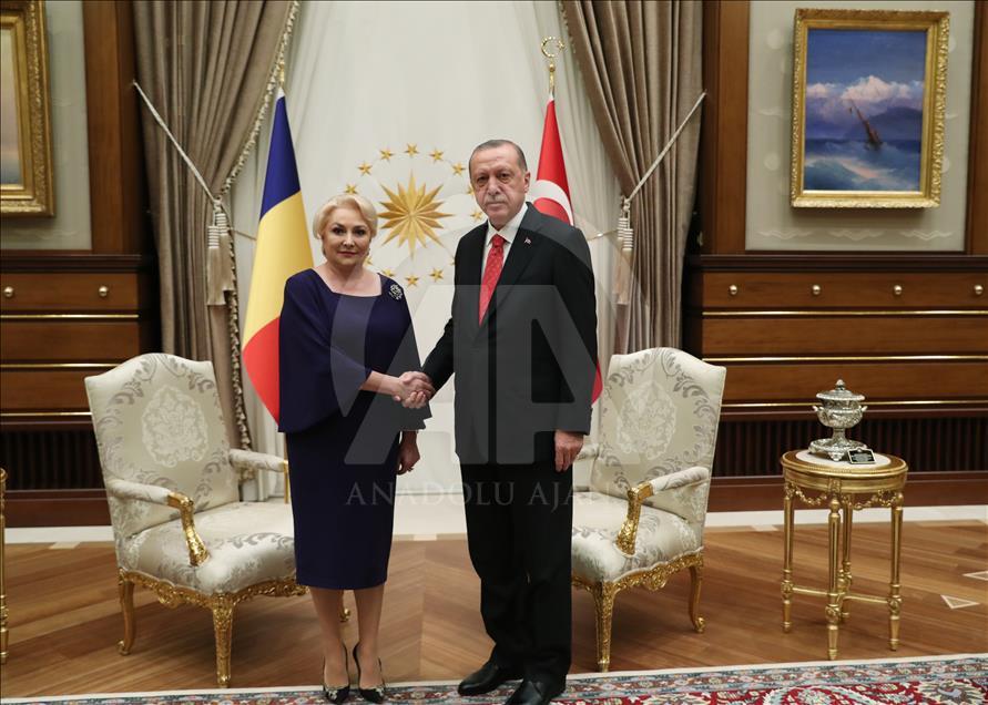Türkiye Cumhurbaşkanı Recep Tayyip Erdoğan, Cumhurbaşkanlığı Külliyesi'nde Romanya Başbakanı Viorica Dancıla'yı kabul etti. ( Kayhan Özer - Anadolu Ajansı )Kayhan Özer