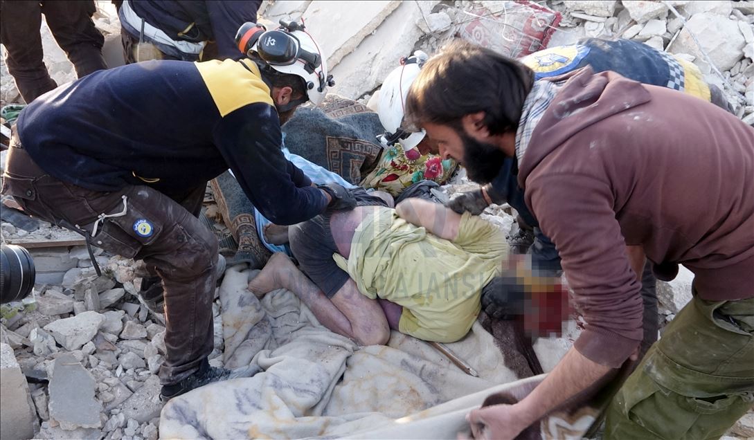 Rus savaş uçaklarının İdlib'in Marretmısrin beldesinde bir tavuk çiftliğine sığınanları hedef aldığı saldırıda 16 sivil hayatını kaybetti. Sivil savunma ekipleri, saldırı sonucu yıkılan binaların enkazında arama kurtarma çalışması gerçekleştirdi.