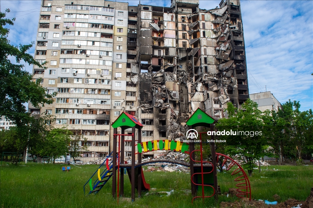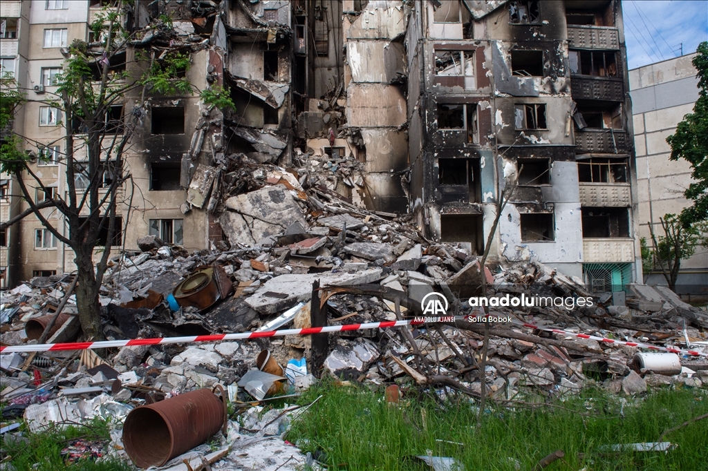Rusya’nın saldırısı altındaki Ukrayna'nın Harkiv Oblastı'nın merkezi olan Harkiv kentinde, saldırılar sonucu Saltivka bölgesinin kuzeyinde zarar gören yerleşim merkezi görüntülendi.
