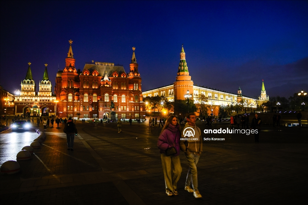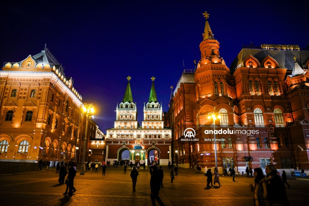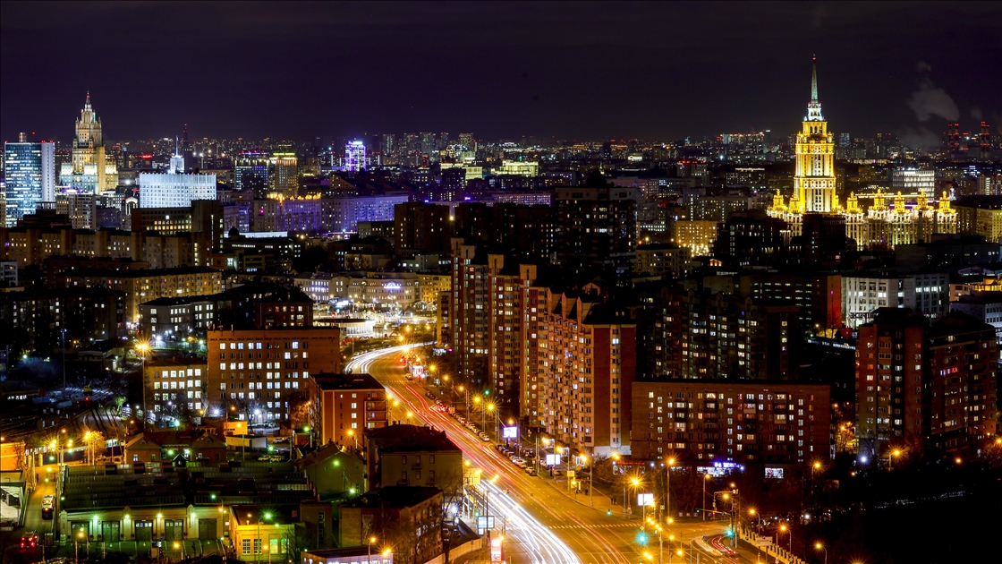 Rusya-Ukrayna Savaşı nedeniyle bazı ülkelerde enerji tasarrufu uygulamaları kapsamında gece ışıklandırmalarında kısıtlamaya gidilirken, Rusya'nın başkenti Moskova’da ise önemli yapı ve binalar akşam saatlerinden başlayarak sabaha kadar ışıklandırılıyor.