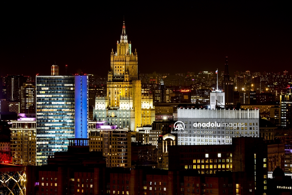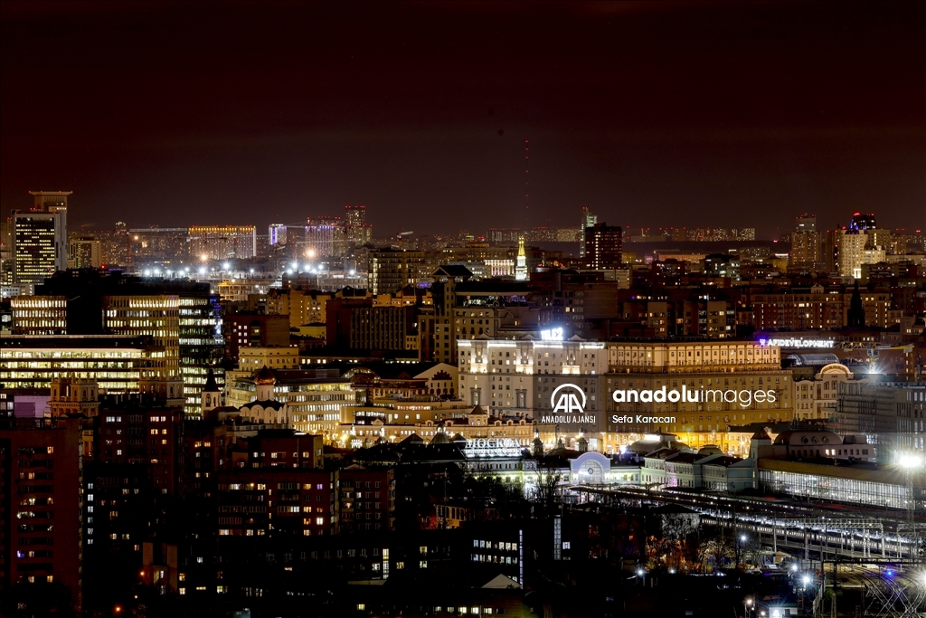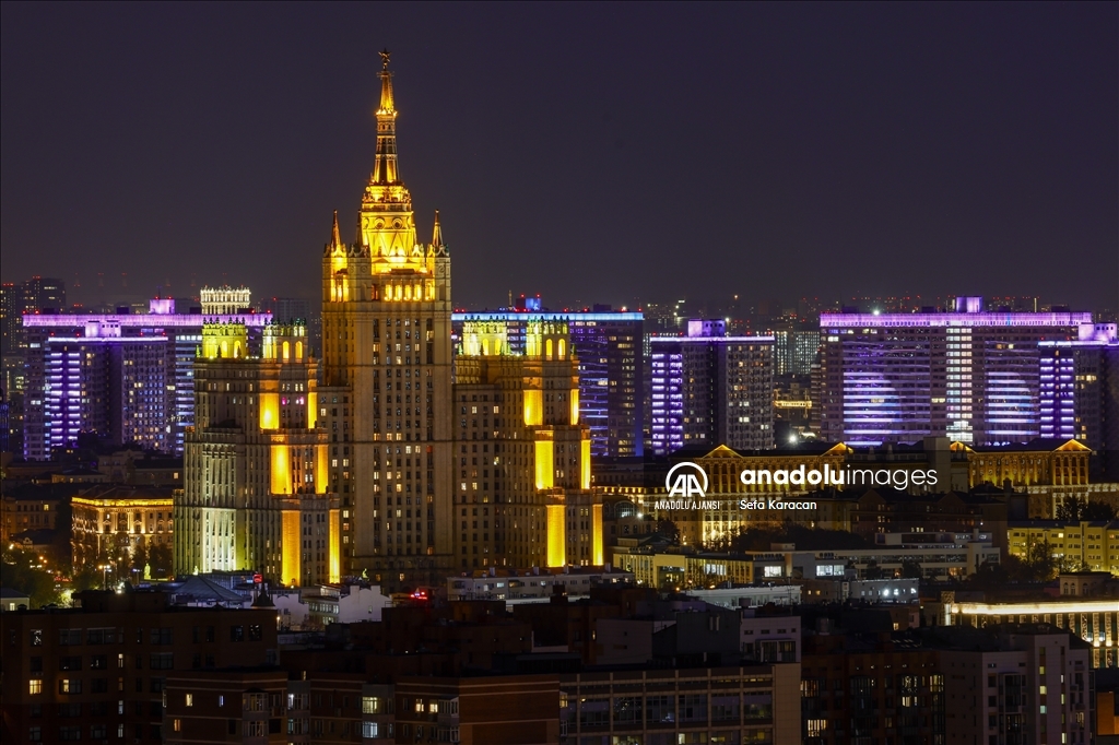 Rusya-Ukrayna Savaşı nedeniyle bazı ülkelerde enerji tasarrufu uygulamaları kapsamında gece ışıklandırmalarında kısıtlamaya gidilirken, Rusya'nın başkenti Moskova’da ise önemli yapı ve binalar akşam saatlerinden başlayarak sabaha kadar ışıklandırılıyor. ( Sefa Karacan - Anadolu Ajansı )Sefa Karacan