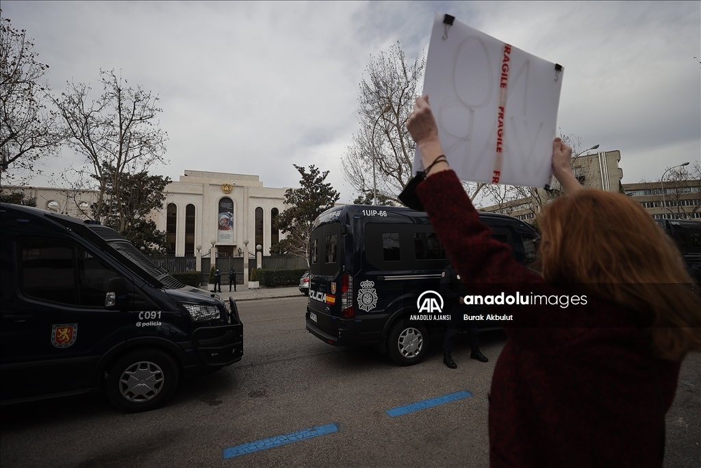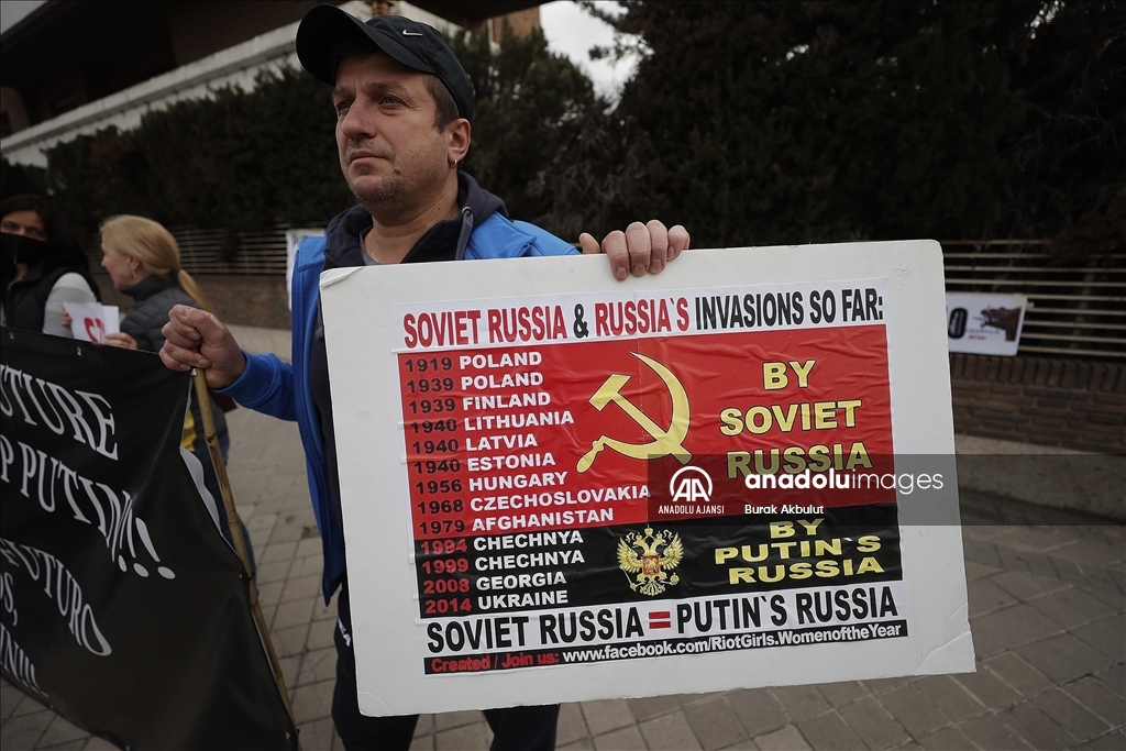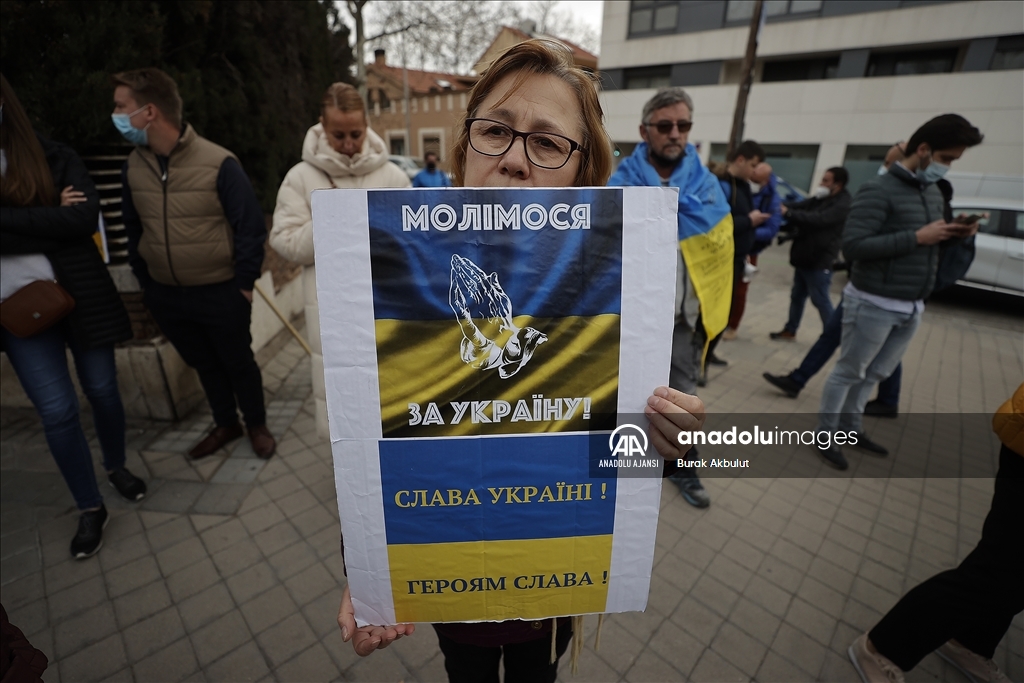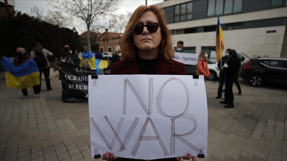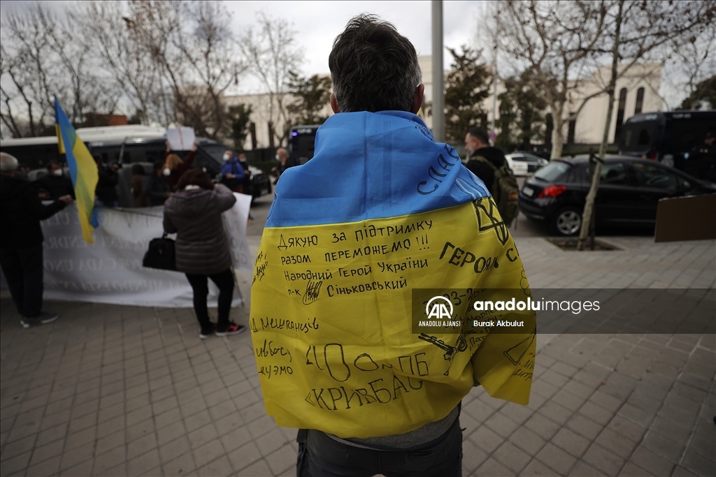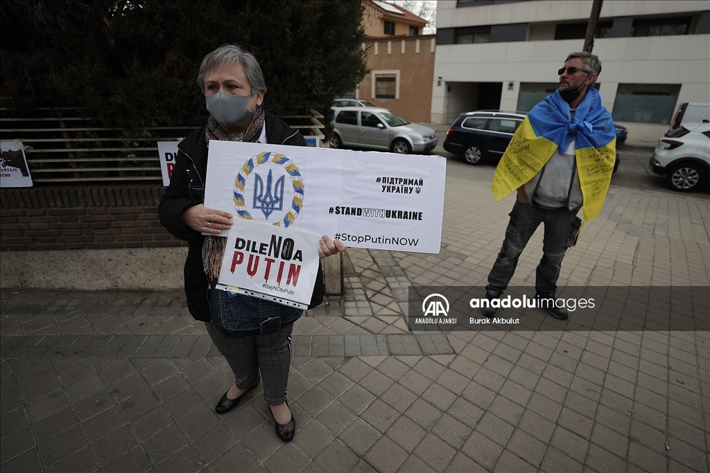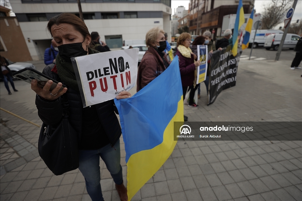 Rusya'nın Ukrayna topraklarına başlattığı askeri operasyon İspanya'da protesto edildi. Rusya'nın Madrid Büyükelçiliği önünde toplanan bir grup Ukraynalı eylem yaptı.