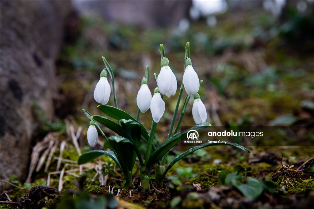Sakarya'nın Kocaali ilçesinde hava sıcaklığının mevsim normallerinin üzerinde seyretmesiyle erken çiçek açan kardelenler doğayı süsledi.